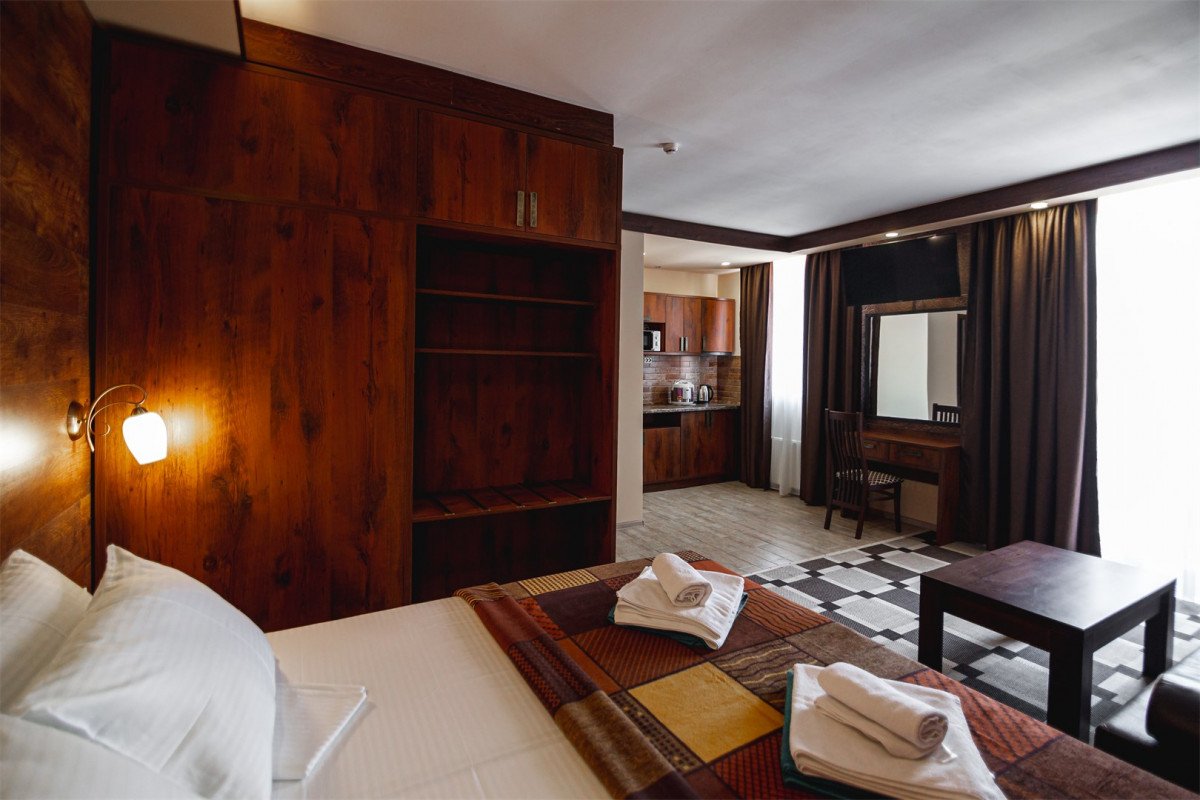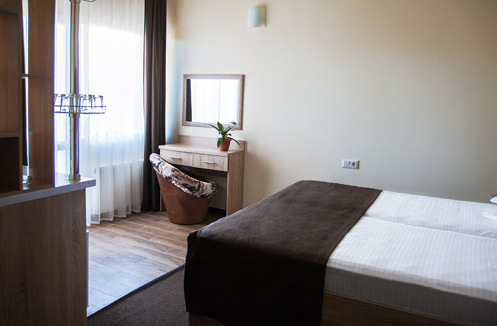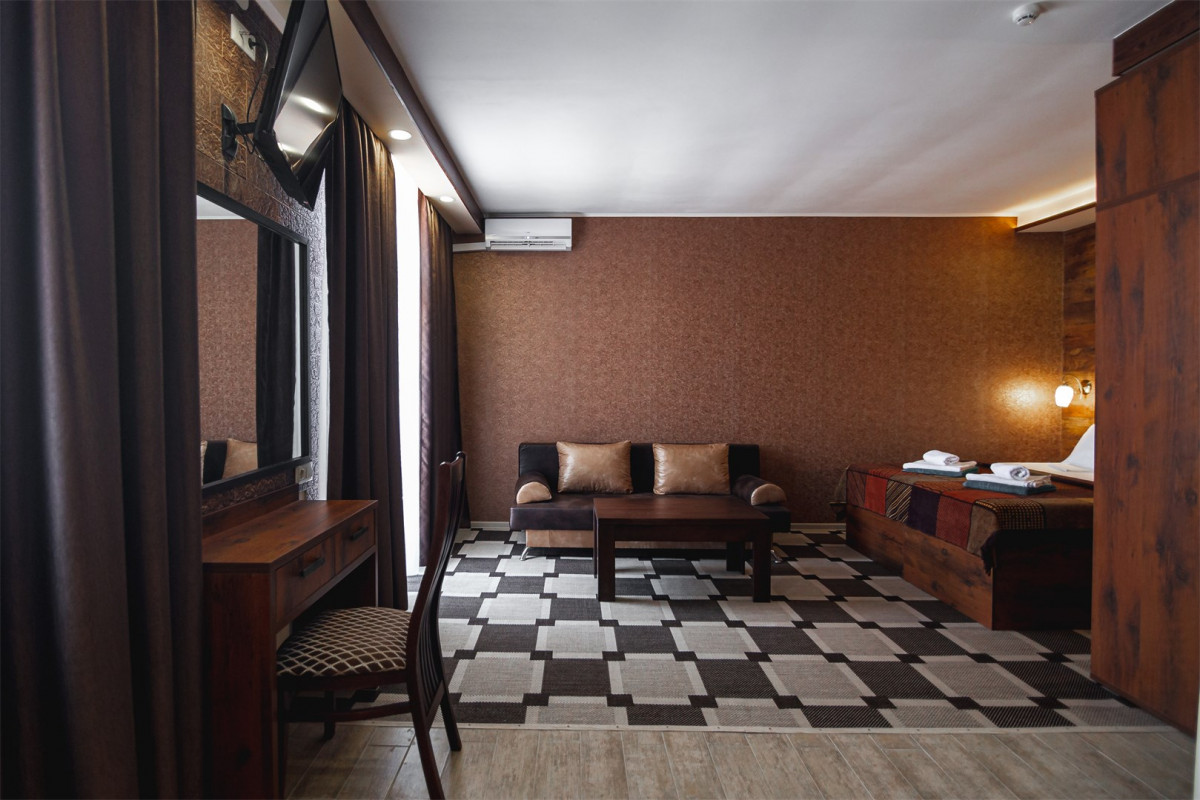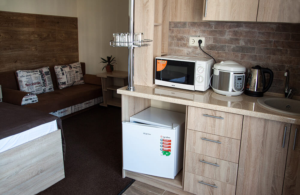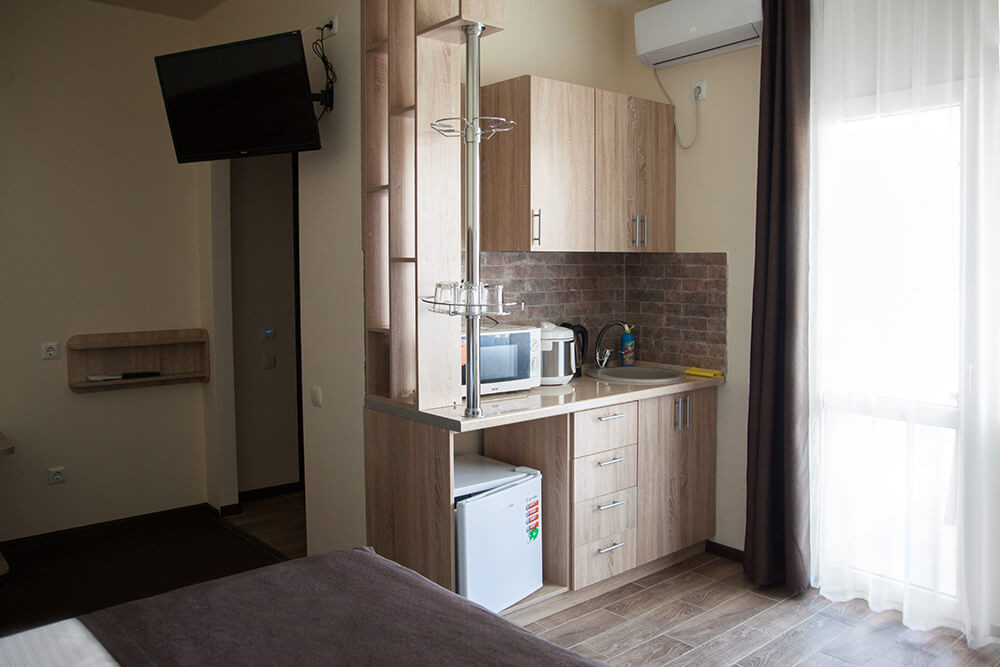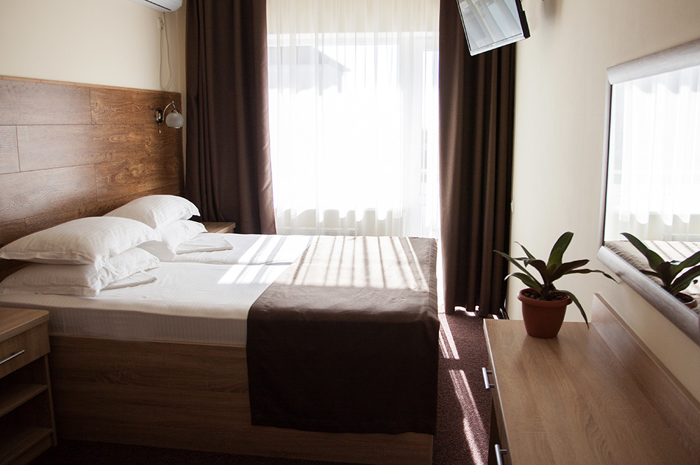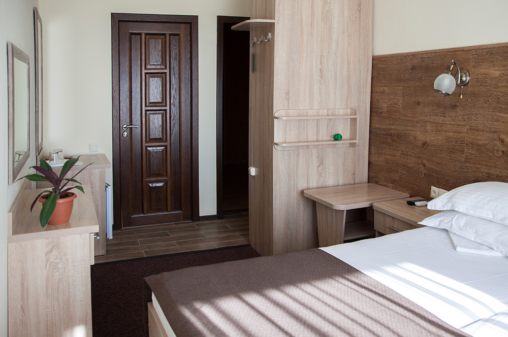 На территории каждого из гостевых домов работает столовая с линией быстрого горячего питания. Территория каждого из гостевых домов уникальна, но выдержана в одном стиле. Уютный, зеленый двор подарит приятные моменты отдыха. На просторной территории имеется кафе с банкетным залом, барбекю-зоны, уединенные беседки для отдыха, детская площадка с мягким покрытием, работает детская анимация. Также в распоряжении отдыхающих парковочная зона, открытые бассейны с детскими зонами. Гостям доступны услуги сауны, массажного кабинета, прачечной, аренда автомобиля, трансфер в любую точку полуострова: платно.