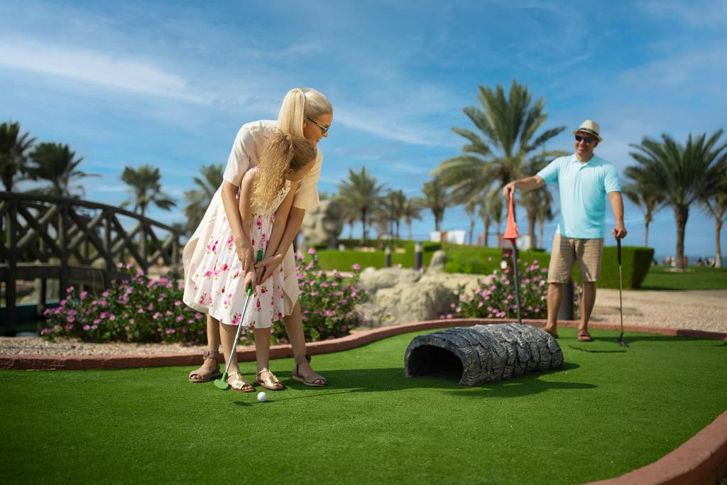 105 Deluxe Room — 31 кв. м, 2 взр. + 2 реб., вид на сад и горы Хаджар. В номере кровать «king-size» или 2 двуспальные кровати, максимум 1 дополнительная кровать