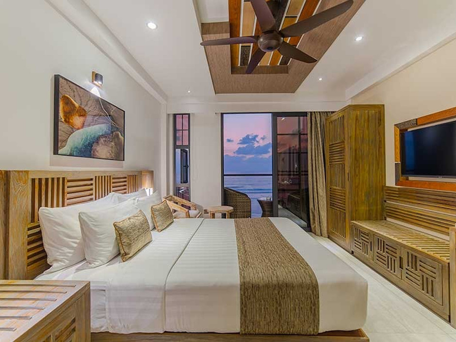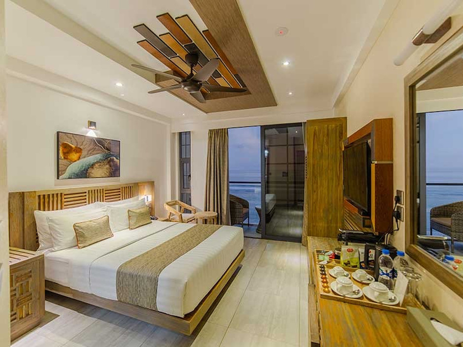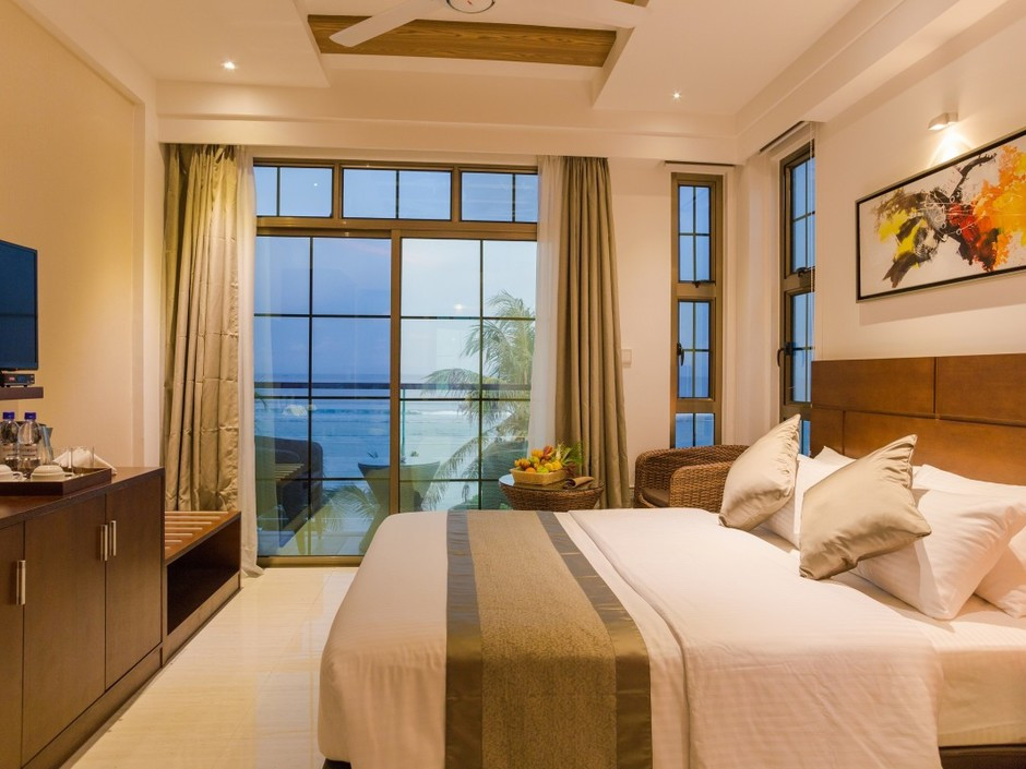 10 номеров Ocean View With Balcony (20,50 кв. м., макс. 3 чел.). Двуспальная кровать, ванная комната с душем, балкон, вид на океан, кофемашина Nespresso