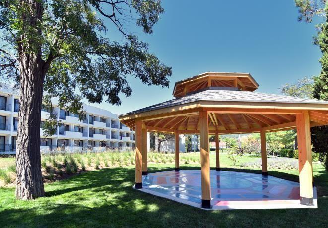 Пожалуй, один из самых современных и высокотехнологичных отелей во всей Болгарии! Совсем недавно он был полностью модернизирован, поэтому здесь вас ждут стильные светлые комнаты со Smart TV и быстрым Wi-Fi и уютные пространства для релакса и общения с друзьями или семьей. Например, на территории отеля можно отдохнуть не только на шезлонгах, но и на гамаках в тени деревьев!