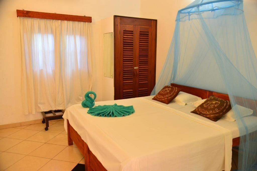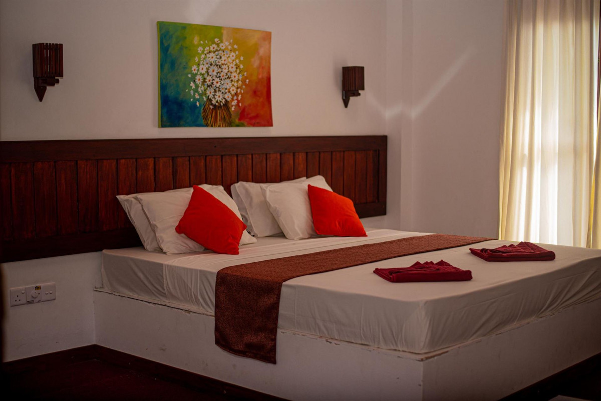 Вспоминаю наш отдых с наслаждением! Понравилось всё! Персонал говорит на английском и сингальском языках, готовы помочь в любой момент, очень доброжелательные. Кондиционер работает прекрасно. Вода в душе есть горячая. Чисто, опрятно, уютно. Замечательный бассейн был прямо на выходе из нашего номера. Завтраки порадовали: мы брали омлет, жареные сосисочки, тосты, зелень, фрукты. Я бы этому отелю 4* поставила, а не 2, как заявлено. Напротив отеля полиция и основная дорога. Тук-тук и крейзи-бас можно поймать прямо у выхода. Позади отеля железная дорога: да, поезд было слышно, но он не мешал, скорее добавлял колорита. До моря 2-3 минуты идти. Можно в любом кафе на пляже занять лежаки, сделав хоть какой-то заказ по меню. Мне хочется вернуться на Шри-Ланку, впечатления самые положительные!