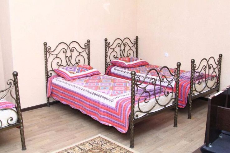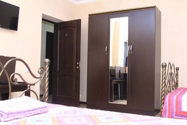 Двухместный номер- Расположен на 2 этаже. В номере: одна 2х спальная кровать, шкаф, холодильник, телевизор, WiFi, сан узел, посуда, чайник.