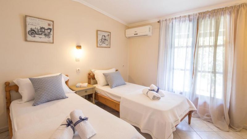 Расстояние до центра города: 12 км от центра города Корфу. Расстояние до аэропорта - 10 км от международного аэропорта г. Корфу. Расстояние до автобусной остановки - 100 м