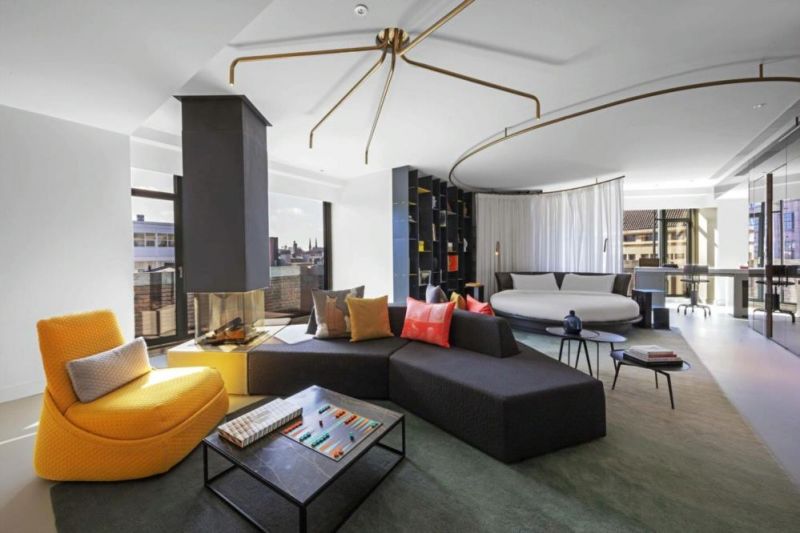 Extreme Wow Suite Bank – 112 кв. м., просторный двухуровневый номер, с камином, с гостиной на нижнем уровне и с круглой кроватью в спальне на верхнем уровне. Вид на город или канал. Максимальное размещение – 3 человека.