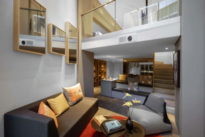 Marvelous Suite Exchange – 45-50 кв. м., в двухуровневом номере просторная гостиная зона на первом уровне, кровать king-size на втором уровне, в ванной комнате – душ. Вид на атриум. Максимальное размещение – 3 человека.