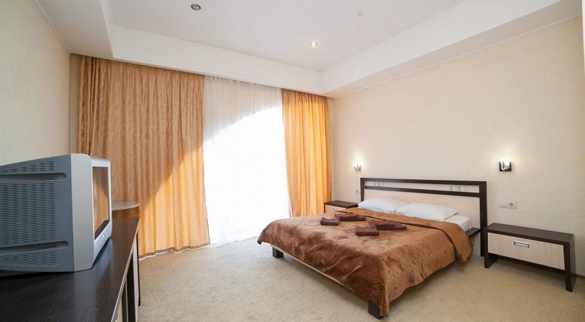 ЛЮКС RED С БАЛКОНОМ. Прекрасный и просторный номер с панорамным видом на гору Алчак. Рассчитан на проживание двух человек, также имеется два дополнительных места