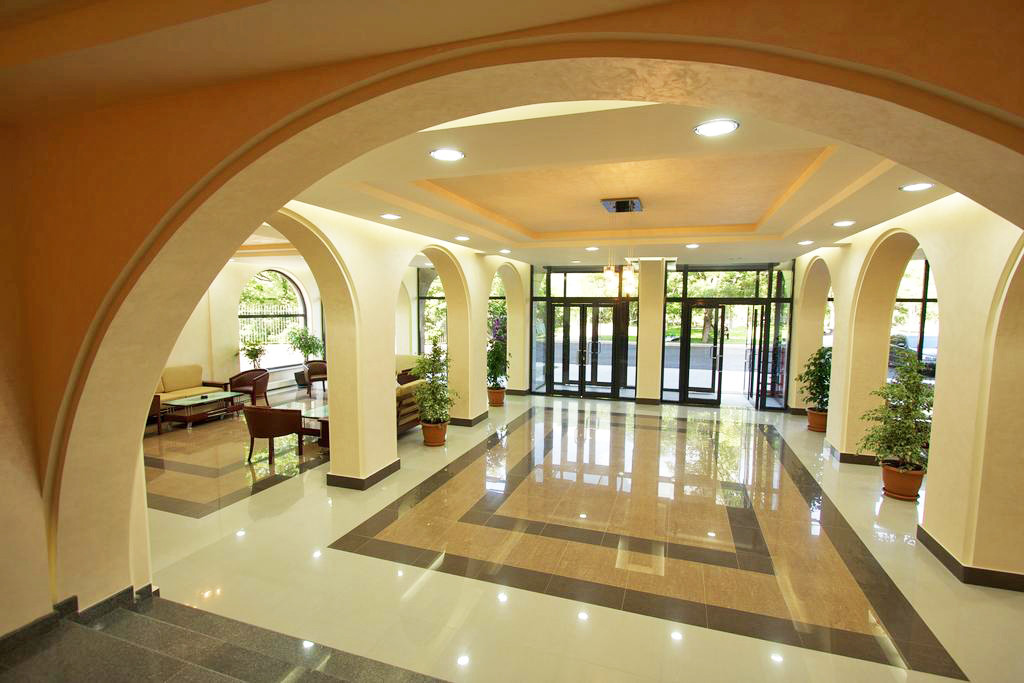 Современное здание гостиницы состоит из 7 корпусов связанных между собой внутренними коридорами. Отель имеет развитую инфраструктуру с широким спектром услуг - обширная зеленая территория, рестораны и бары, крытый и открытый бассейны, конференц залы, боулинг клуб, диско-клуб, тренажерный зал и спа-центр, детская площадка и мини клуб. Живописная природа и мягкие климатические условия делают это место идеальным как для активного, семейного отдыха, или оздоровления, так и для проведения бизнес-встреч и конференций различного уровня.