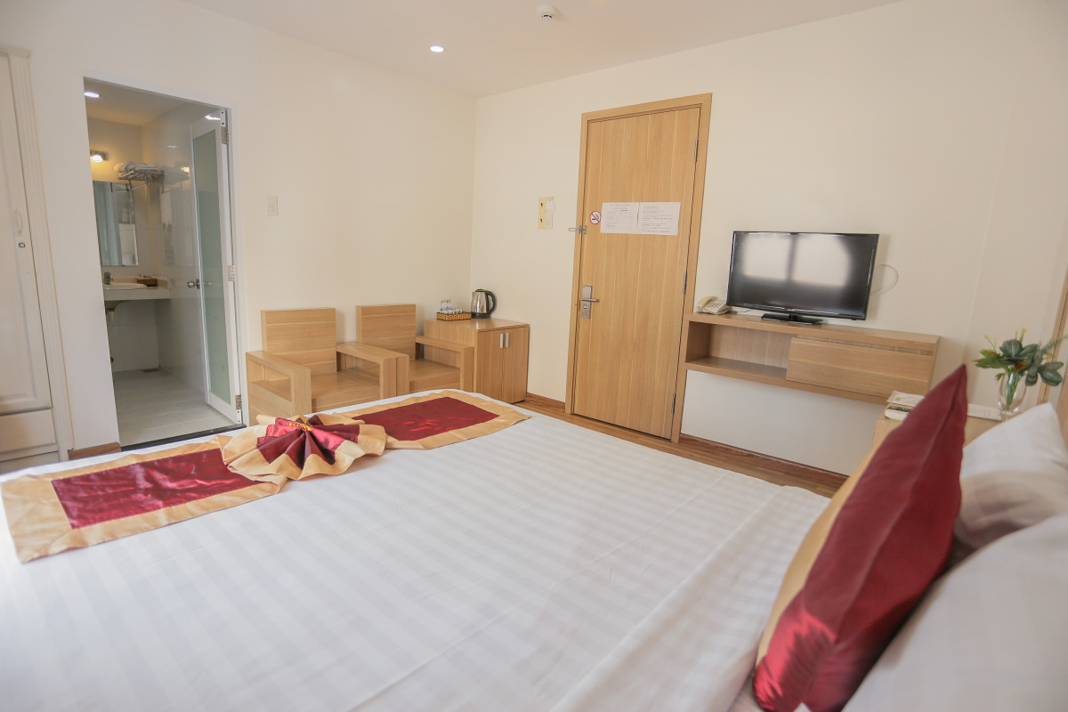 Все как на фото, в отличие от других отелей здесь не используют картинки, а реальные фотографии! Из минусов: отсутствует бассейн и это ооооочень неудобно. Через дорогу есть Парк Горького, там бесплатные бассейны разных уровней, работают вроде до 19.00, лежаки возле них платные, народу всегда много, т.к. во многих отелях городского типа нет бассейнов! Постоянные стройки и шум не дают спокойно спать, примерно с 5 утра под окнами начинали строить, что дико бесило! Электронный ключ от номера вставлялся в выключатель и ву-а-ля! загорался свет, ноо при уходе из номера ключ забирался и все электричество гасло, в том числе и холодильник, поэтому все очень быстро портилось и выбрасывалось! Стандартная азиатская уборка - помахали сухими тряпками и пошли... Питание однообразное, ничего особенного. Вьетнамка несла нарезанный арбуз, нечаянно уронила тарелку, но ничего страшного, с пола се собрала и поставила на столы - КУШАЙТЕ!!! Вообще отношение персонала ужасное, но т.к. мы приехали отдыхать, то на них внимания не обращали! Только ночевали, ну и изредка пережидали жару! Плюсы: плазменный телевизор с выходом под флешку, бесплатный вай-фай, чай, кофе, сахар, мыльные принадлежности каждый день. Теперь немного о самом отдыхе, в период с 1 по 13 апреля была большая волна, в море на пляже ни разу не купались, поэтому я и отметила в минусах отсутствие бассейна, приходилось ездить на парагон, там отсыпанный пляж и нет волны, но обстановка как на деревенском пруду, мусор, все на полотенцах и т.д. Ездили в Винперл, там неплохой пляж - лежаки, зонтики и т.д, но это одноразовая поездка. Для разнообразия советую съездить в Далат, экскурсия с обедом, но мы брали с собой бутерброды из отеля. Подошли и сказали, что ранняя экскурсия и завтрак с собой, утром на ресепшене стояли упакованные бутерброды и вода. Еда! Если сравнивать с Тайландом, то с питанием в Нячанге очень туго, попробовали покушать в кафешке, по итогу все четверо заседали все ночь , сами поняли где)))) Решили не испытывать больше судьбу и кушали в ресторане, очень советую ресторан "Армения", отличная кухня и интерьер, живая музыка, к детям относятся очень лояльно, они там сами себе веселятся, детей кстати много всегда. Еще хороший ресторан Сторис, это рядом с бассейном в парке горького. В ресторанах питаться дороговато, но свое здоровье дороже! Фрукты продаются на каждом шагу по доступным ценам. Развлечения! Клубы, бары, кабаки все есть. Под синьку можно походить, более менее для русских туристов клубы Рэббит и Зима. В общем впечатление от отдыха хорошее, но для себя решила, что по собственному желанию в Нячанг больше ни ногой, только если по очень выгодной цене, тысяч 17 с человека.