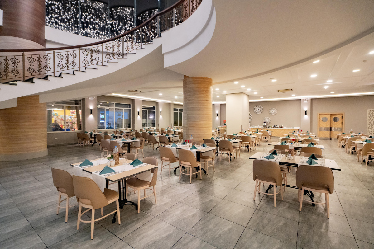 Отличный отель. Рядом с аэропортом. Еда супер, богатый выбор. Море первая линия собственный пляж. Лежаков хватает всегда. Анимация для детей и взрослых. Детский клуб как детский сад с возможностью поесть и даже поспать. Работает с 9:00 до 22:00. Все очень понравилось. Если вам нужны магазины то имейте ввиду что ближайшие в 40км . Есть автобус по записи от отеля либо такси.
