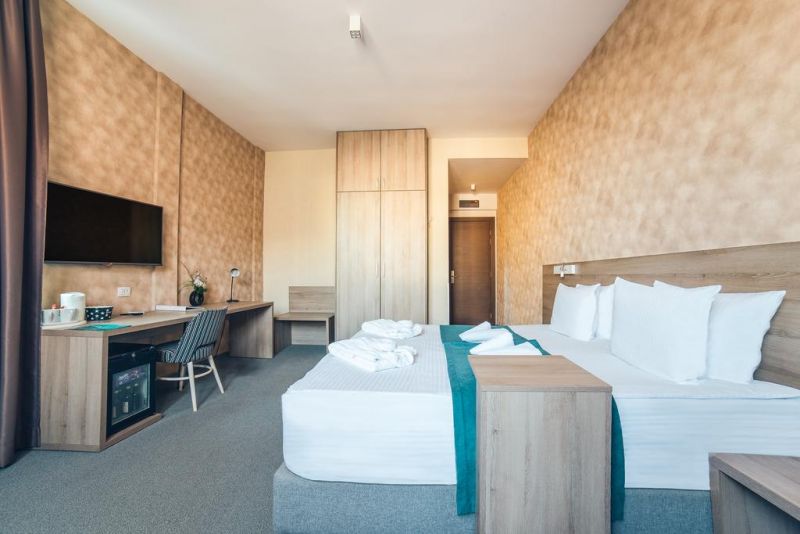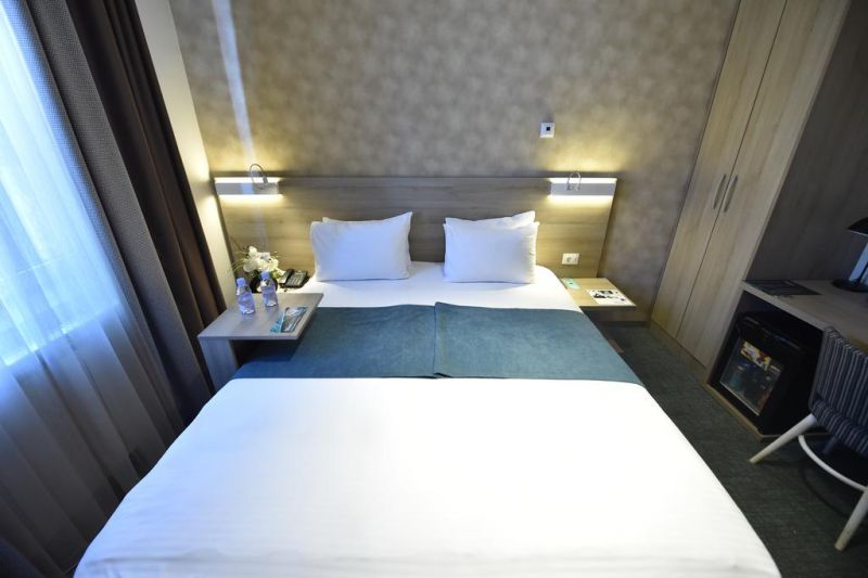 Двухместные номера (15 кв.м.): просторные и светлые с уникальным дизайном, с двумя удобными удлиненными односпальными кроватями или с одной кроватью размера "Queen-size" в центре, оснащенные качественным постельным бельем. По прибытии в номер гостям предоставляется бесплатный чай и кофе, а также бесплатный Wi-Fi. Двухместные номера оснащены большим рабочим столом, бесплатным беспроводным доступом в Интернет, хорошо укомплектованным мини-баром, удобным ночным столиком, элегантными плотными шторами, телевизором с плоским экраном и кабельными каналами, сейфом, телефоном и кондиционером