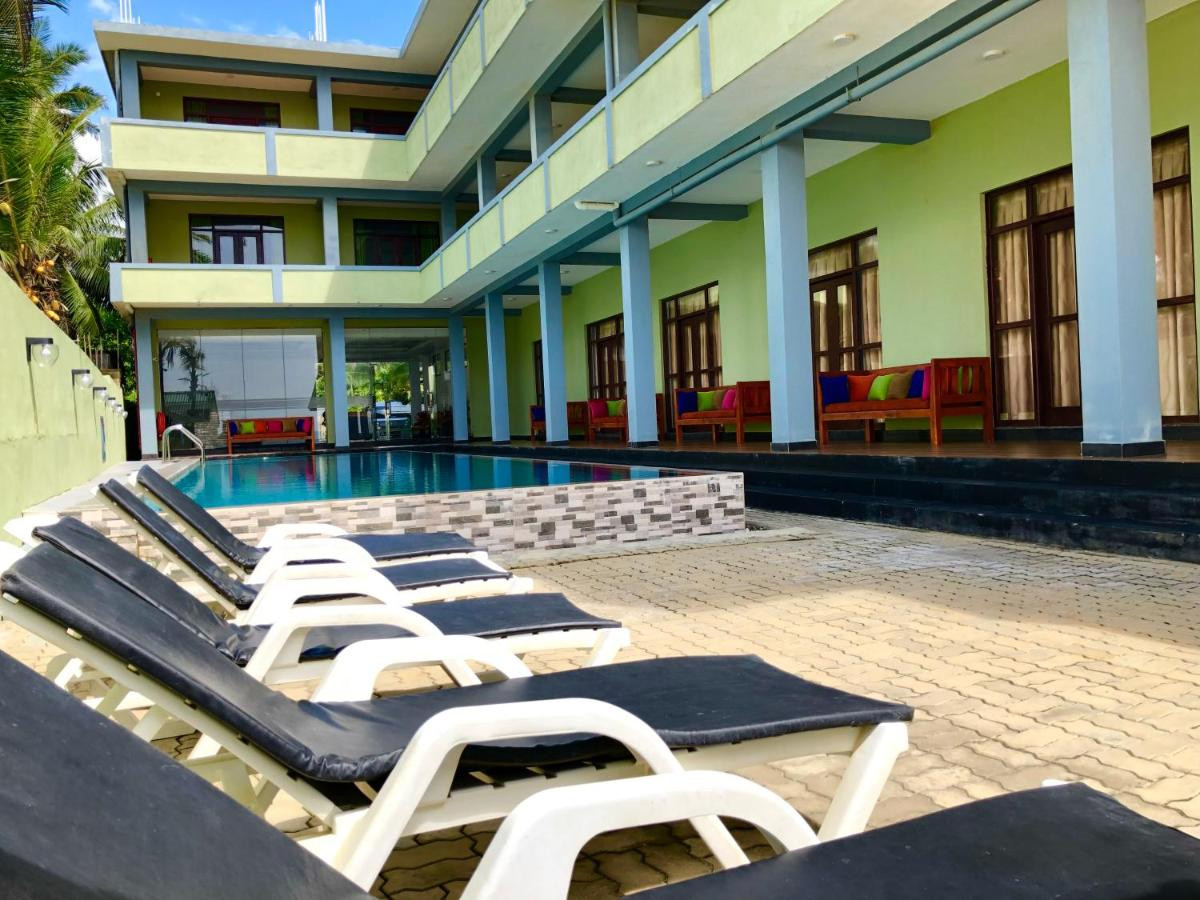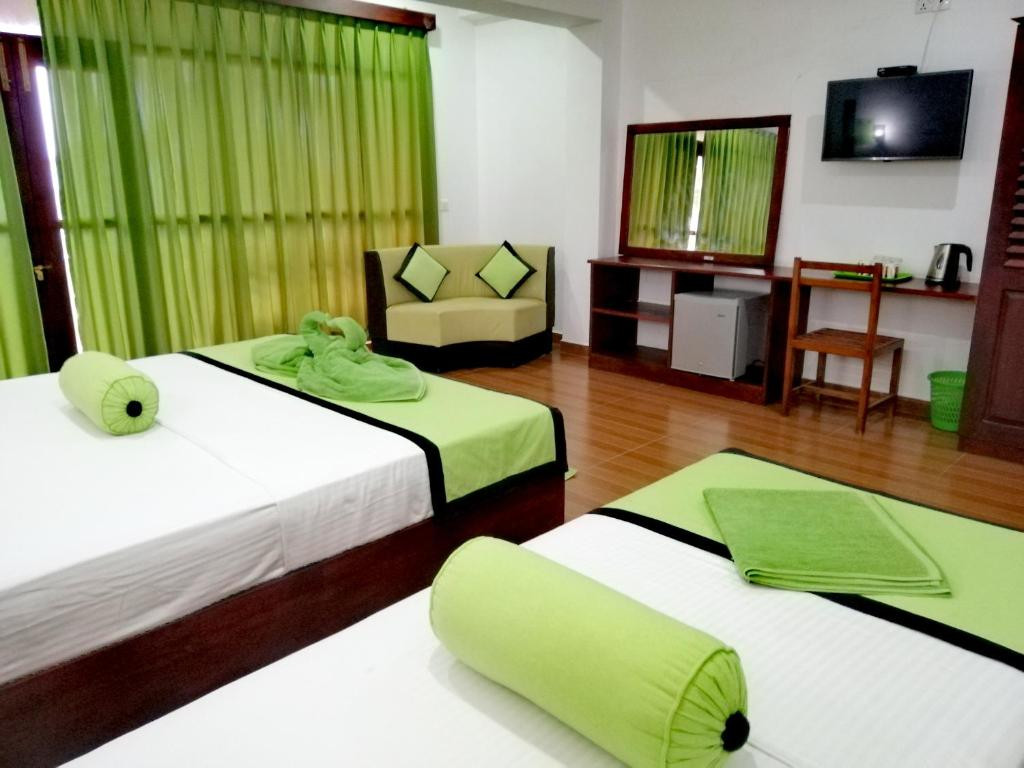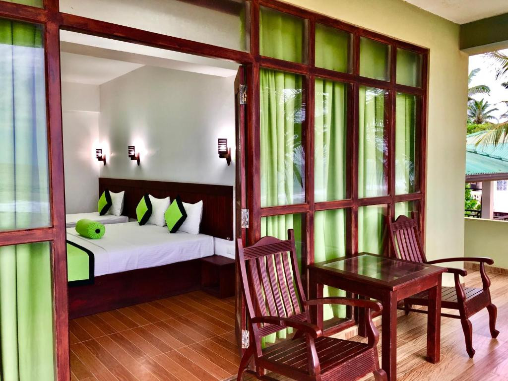 Всем добрый день! Хочу поделиться с вами впечатлениями о нашем отдыхе. Отдыхали мы с 15 января, компанией две семьи с детьми! Вообщем об отеле: отель не плохой, чистенько, бассейн хороший каждый день чистят (кстати купаться в нём можно только до 20:30), вежливый персонал (но такое ощущение, что русских все-таки не долюбливают). Отель находится на первой береговой линии, есть свои бесплатные лежаки, море тёплое, но волны, первое время даже прикалывались попрыгать по волнам, пока один не ушибся, и потом надоело выколупывать песок из купальника, но как повторюсь не беда, есть отличный бассейн! На территории есть кафе, по дороже, но огромный минус, очень не вкусно, постоянно горелый рис! Пытаются обсчитать! Один раз не донесли блюдо, и потом делали вид, что всё нормально. Да и хер с ними, но не приятно! Номера старенькие, ремонт не обходим: старые пошарпанные полотенца и бельё, которое не разу не меняли. Ещё в номере невозможно было оставить еду и даже просто хлеб, муравьи атакуют, а ещё они позлают и по одежде (касаются). Видели ещё огромного таракана на балконе. На экскурсии не ездили, каждая находится далеко примерно ехать часа 3,а это опять дорога, да и дорого 150$ и меньше, того не стоит. Расположение отеля немного удалено от всей тусы, правда это большой плюс тихо и спокойно. Мы добирались до центра Хиккадувы на тук-тук, рукой махнул 5-7 мин 300-400 рупий и на месте, там все кафе, магазины, обменник! Хочу отметить кафе Ред Лобстер офигенное кафе, с приятными ценами и очень БОльшими порциями! Ещё нам посоветовали кафе "Ю", да на песке, интересный интерьер, качели, свечи, русско-говорящая приняла у нас заказ! Денег отстегнули много, но совсем не наелись и не вкусно. Не ходите туда люди!!! Не советуем! Кстати в эту сторону и пляж с черепахами и маркет большой и алкомаркет. На против отель через дорогу тоже есть два маркета, можно купить всё необходимое и ходить далеко не надо! Но алкогольную продукцию можно купить только в алкомаркетах. (В половину дешевле, чем в кафе).