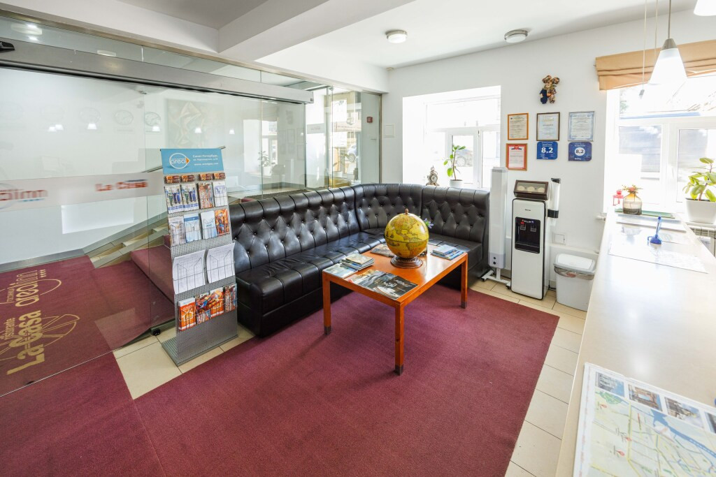 Люкс: 38 кв. м. Двухуровневый номер. На нижнем уровне располагается зона отдыха — гостиная, на верхнем уровне — спальная комната с выходом в сан. узел. Две односпальные или одна двуспальная кровать с ортопедическими матрасами, гидромассажная ванна, инфракрасная сауна, подогреваемые полы.