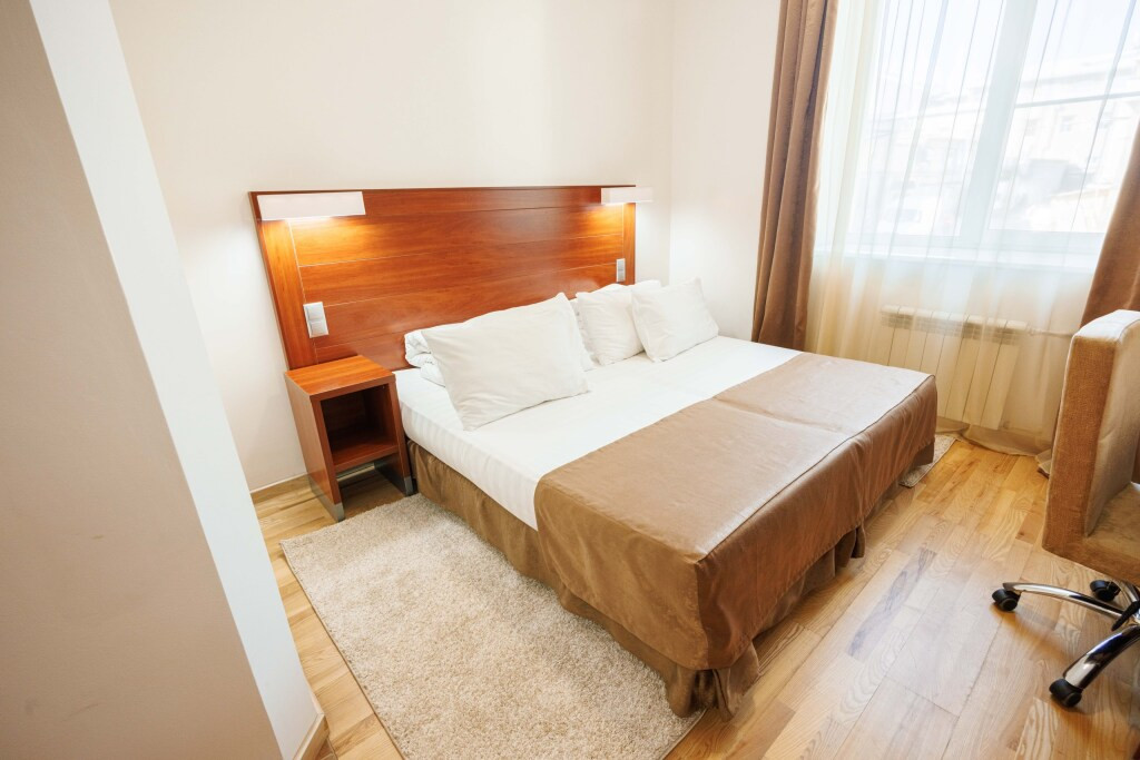 Стандарт: 19-20 кв. м. Две односпальные или одна двуспальная кровать с ортопедическими матрасами