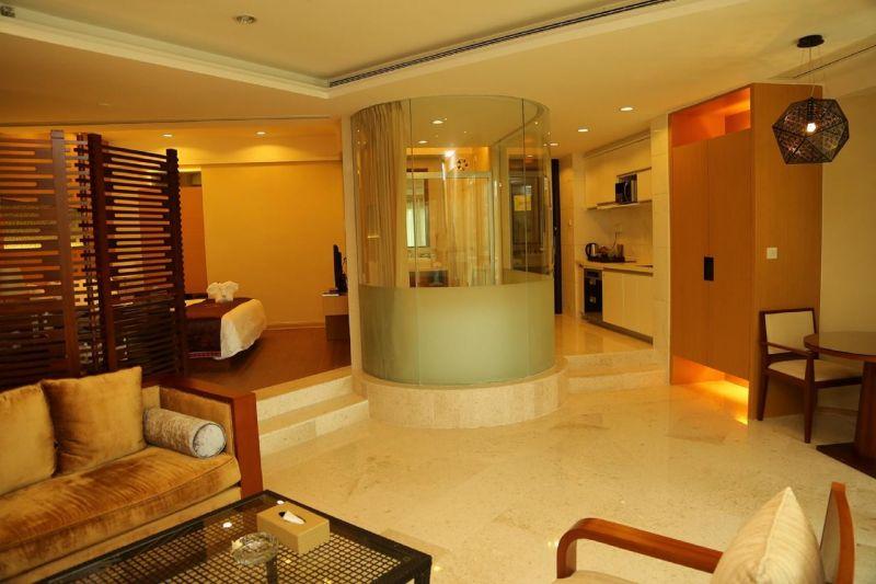 Отель расположен в бухте Clear Water Bay (Бухта чистой воды), в 46 км от центра города Санья. Аэропорт Феникс находится в 62 км от отеля. Рядом стоящие отели: Raffles Hainan.