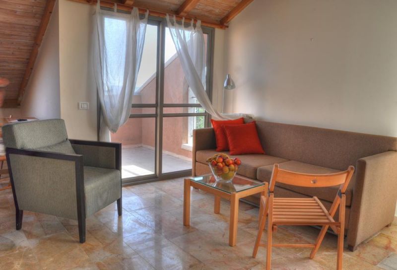 - Superior One Bedroom Apartment Balcony (около 50 кв.м, спальня и большая гостиная, кухня, столовая зона, 2 балкона с мебелью; расположены на 1 и 2 этажах)
