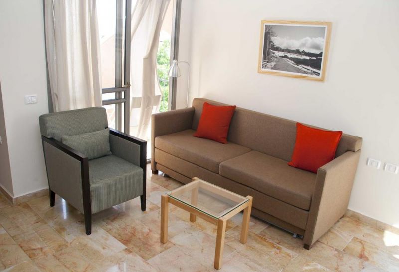 - Superior Studio (около 35 кв.м, спальня отделена от кухни и столовой зоны перегородкой, балкон с мебелью; расположены на 1 этаже)