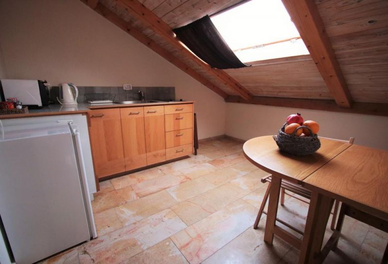 - Studio (около 30 кв.м, спальня отделена от кухни и столовой зоны перегородкой, балкон с мебелью; расположены на 3 этаже, на мансарде)