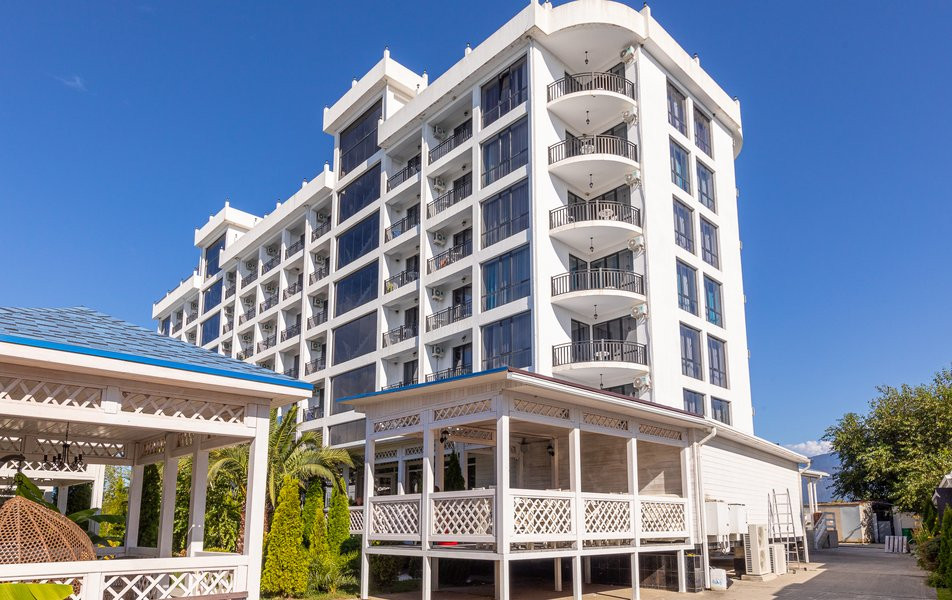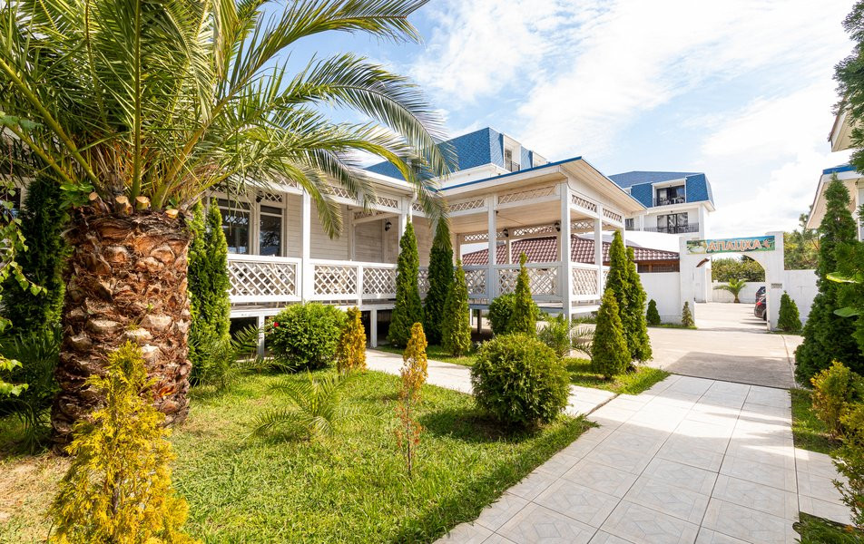 В поселке Алахадзы, на первой линии Черноморского побережья, в 60 км от аэропорта г. Сочи, в 15 км от города-курорта Гагра и в 30 км от знаменитого озера Рица.