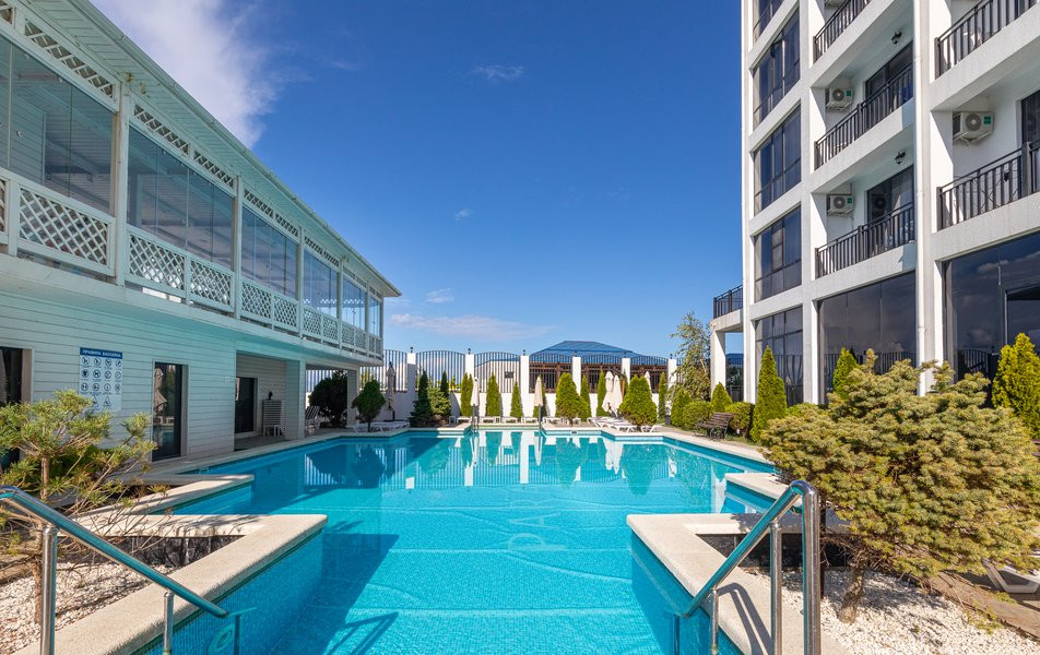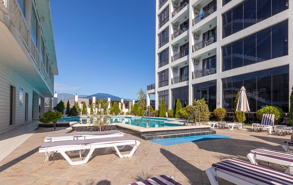 Отдыхали семьей с 27 мая по 3 июня 2025. Остались очень довольны. Отель шикарный, WI-fi хорошо ловит на ресепшене. Уютный новый, чистый. В номере есть все (полотенца, мыльные принадлежности, тапочки, чайник, телевизор, фен, сейф) на каждом этаже вода в кулере, гладильная доска, утюг. Влажная приборка в номере каждый день. На территории отеля есть бассейн с подогревом, сауна. Пляж в одной минуте от отеля шезлонги, зонтики. Еда разнообразная (особенно молочная продукция, вкус детства). Персонал приветливый. Отель Рекомендую! Это спокойное райское место. Вдали от суеты. Единственный минус это граница, в долгом ожидании.