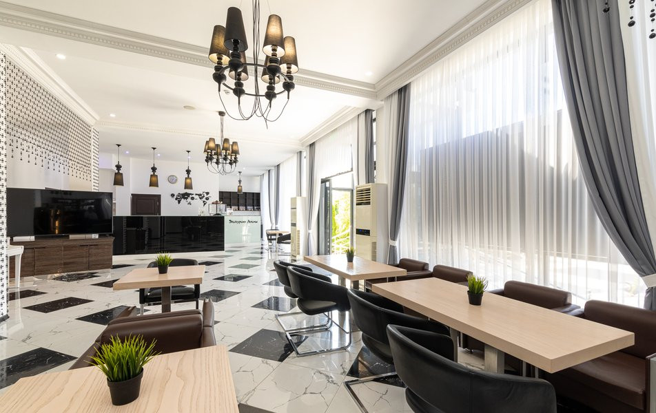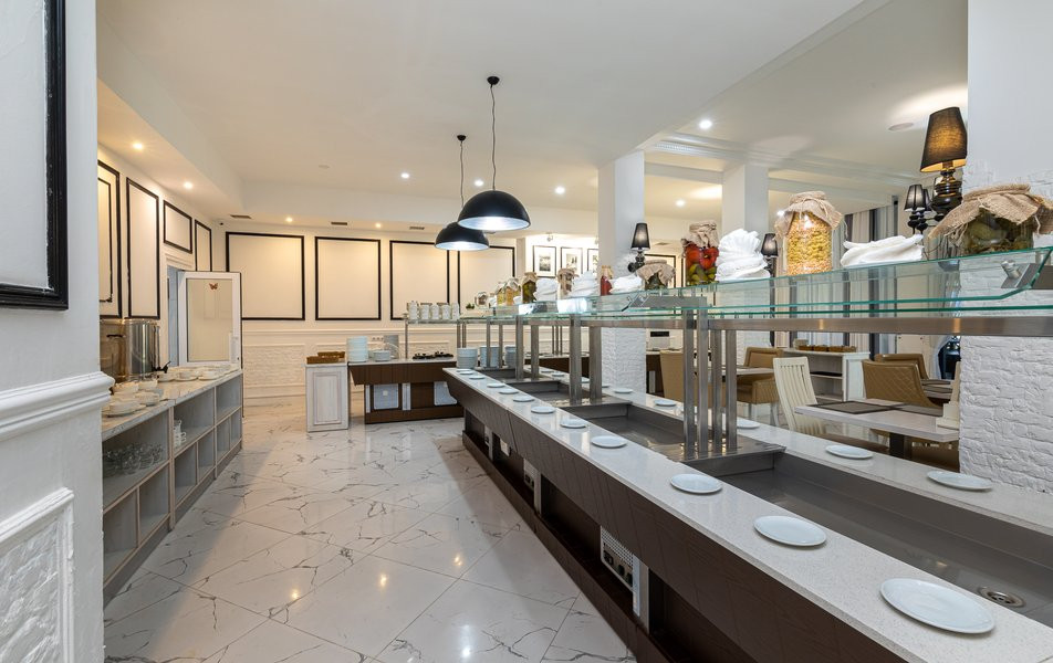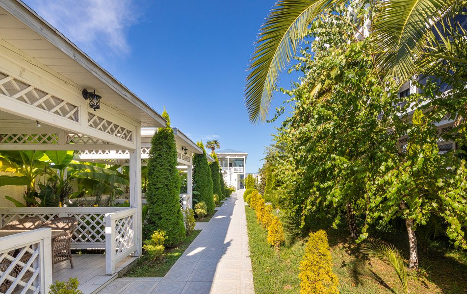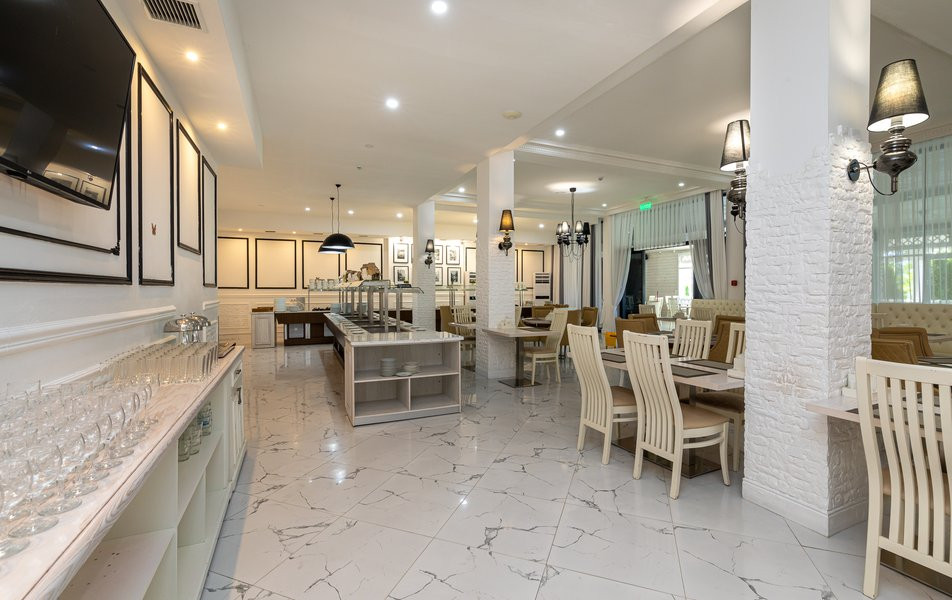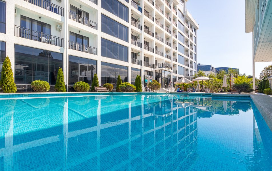 Отдыхаем в отеле в настоящее время! Ну начнем! Те кто привык отдыхать Турции по системе все включено, это не так даже близко, вам не в Абхазию! Я была в Абхазии знаю сервис, поэтому не ходила с кривым фейсом! Номер у нас попался класс с видом на море - люкс две комнаты, огромный балкон,хорошая мебель вообще все со вкусом, за номер 5! Уборка хорошая! Вай-фай почти никакой только на рецепшине хороший, в номере в прихожей брал , иногда в спальне! Бассей хороший, теплый, чистый!питание это отдельная тема, конечно у нынешних бизнесменов только прибыль, на столько человек такая небольшая столовая это конечно жесть! Это только в главном корпусе если считать по минимуму получается около 1000 чел., а если ещё второй корпуп это треш!!! Мест нет, сесть негде!!! Еда конечно не ахти, но голодным не будешь! Любителям сладкого и выпечки можно сразу готовиться, что этого не будет!выносят на такую ораву людей маленький подносик каких-то печенек, булочек (магазинная все стрепня), за секунду их нет, пополнять особо не спешат, интервал минут 15 соблюдают, при выдаче очередного подноса стоит очередь детей! Конечно в наше время воспитание это роскошь как и наличие совести, но охотно обратиться к мамашам, которые вообще не учят детей ни как себя вести, ни как относиться к еде!!!! При таком можно сказать дифите сладостей эти невоспытыши наберут себе полную тарелку и соответственно потом все в урну! Возьми ты пару штук, потом ещё возьми, а зачем! Не понятно почему в отеле нет зелени от слова совсем, элементарная петрушка и укроп, но этого нетуууу. Любителям выпить холявной выпивки нет!!!! Давали один раз на день победы чачу! Больше спиртного не было! Лобби бар иди покупай! Кстати на лоббо оченно вкусные мороженое ..... респект кондитеру пирожное Павлова и черепаха пальчики оближешь,остальное не особо понравилось.море чисто близко, территория не большая, но ухоженная!