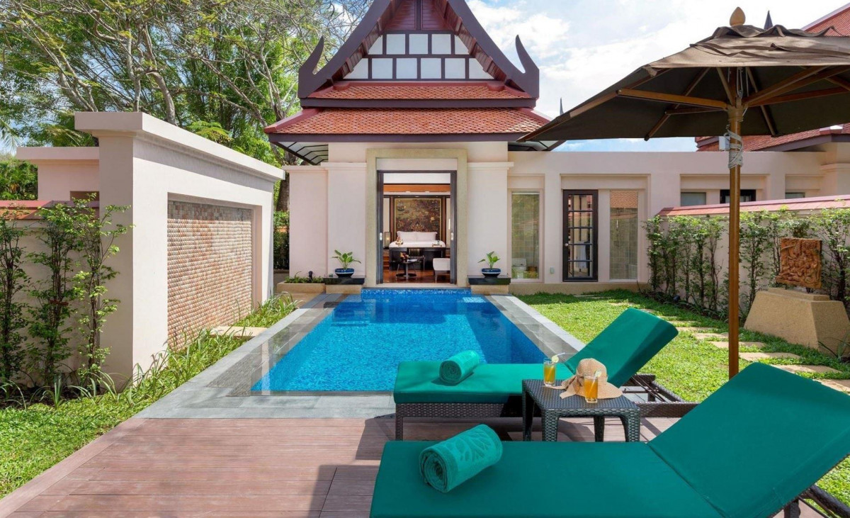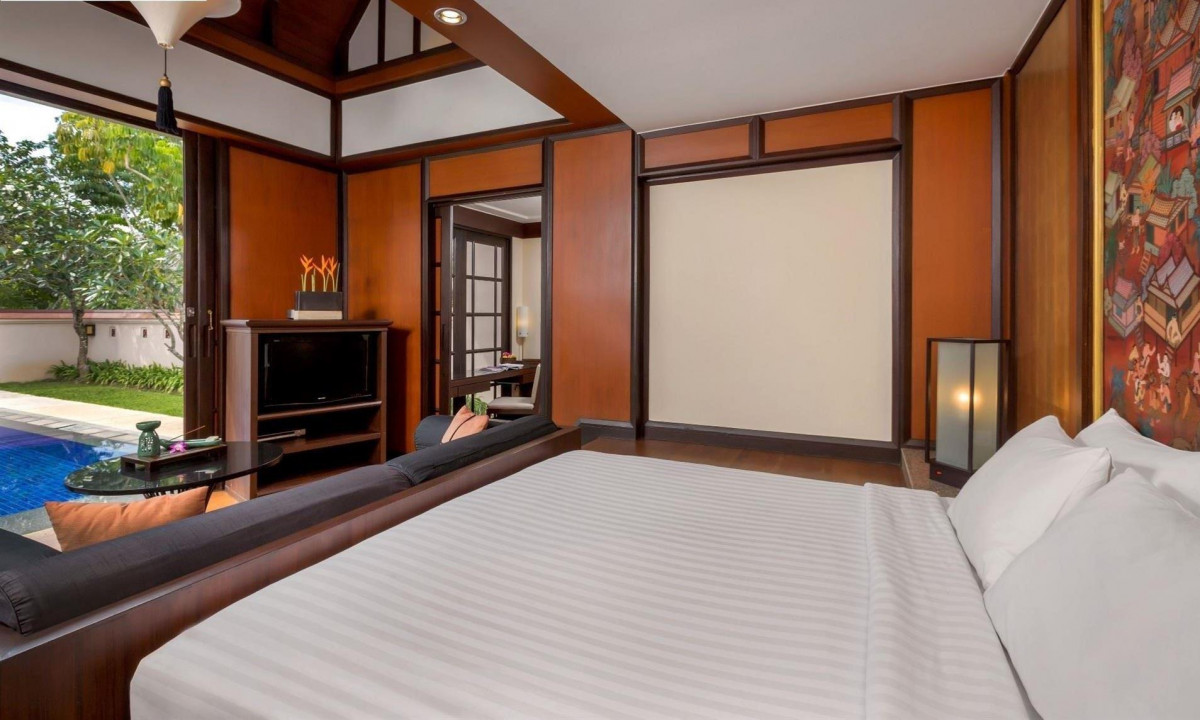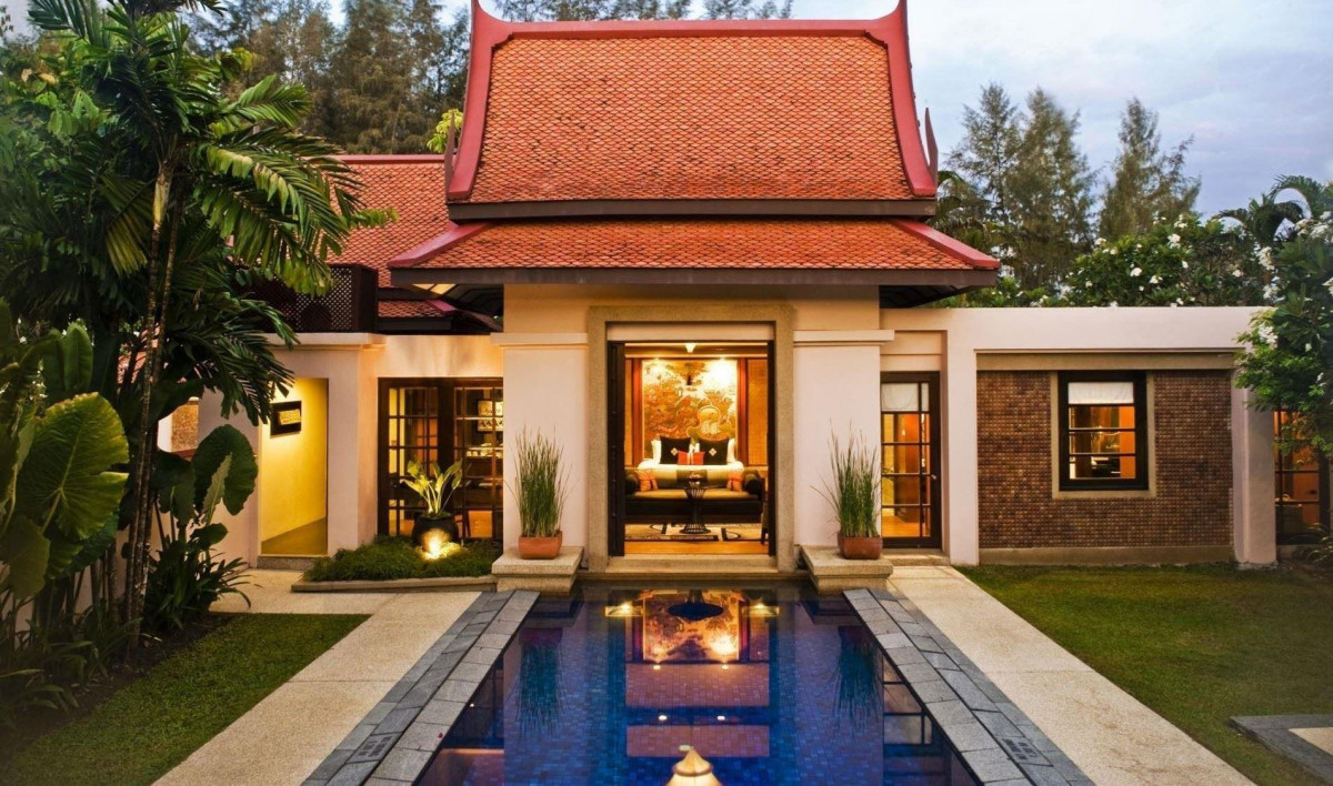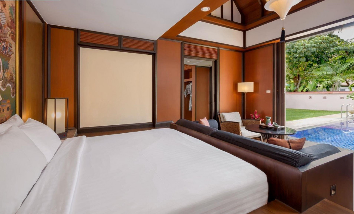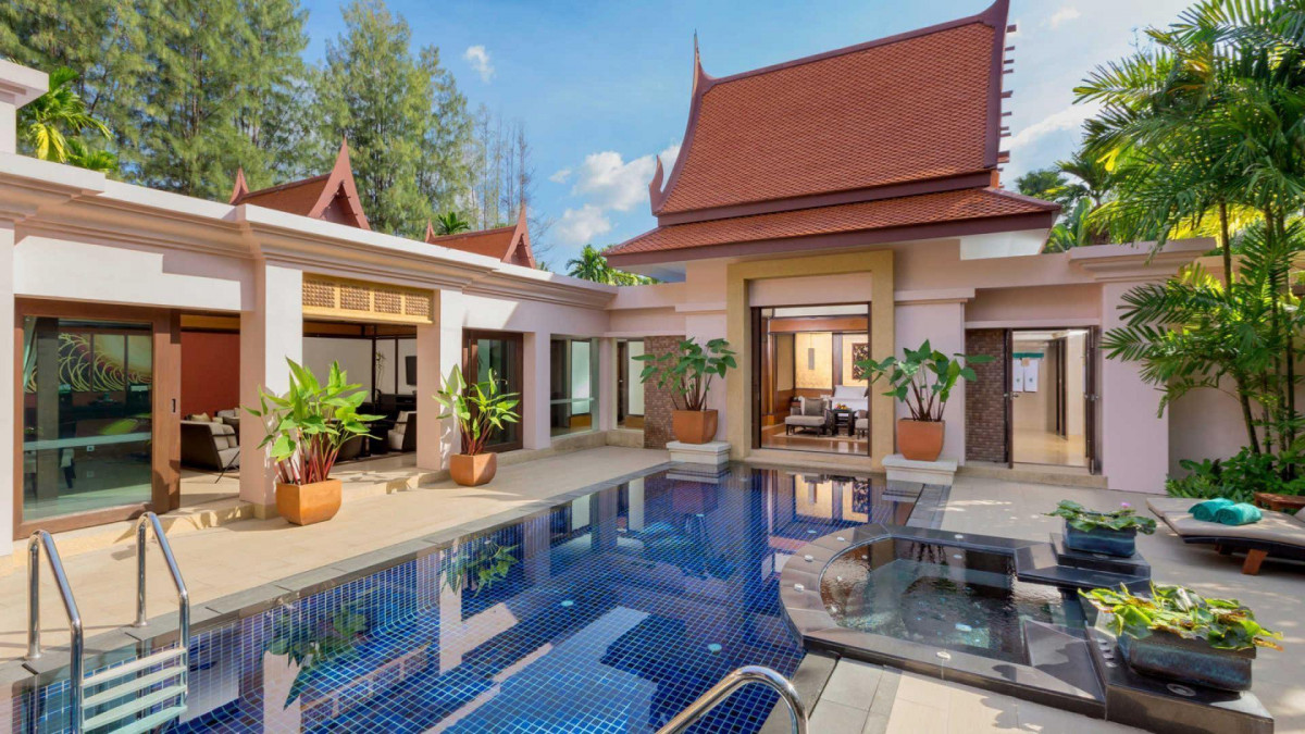В 22 км от аэропорта, в 21 км от центра бухты Патонг, на западном побережье острова Пхукет, в бухте Bang Tao, рядом с полями для гольфа