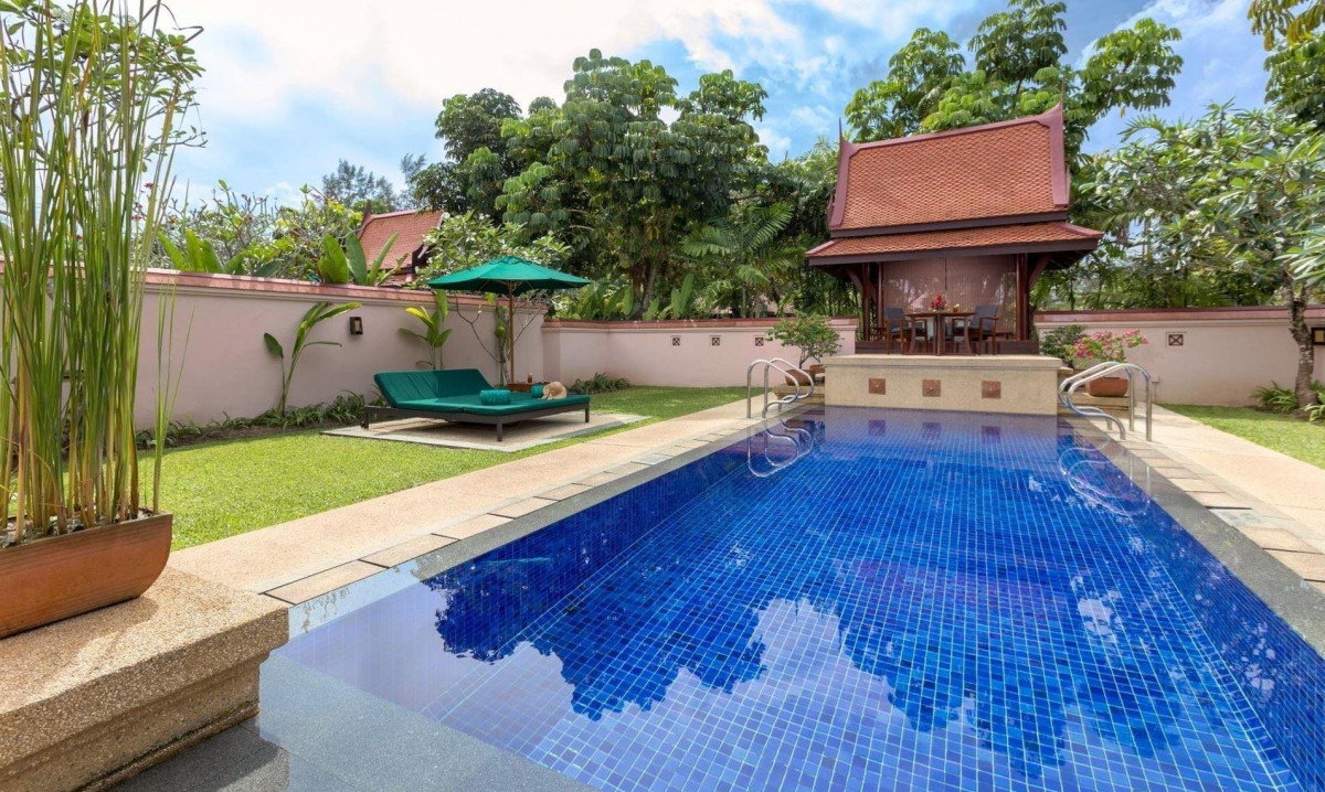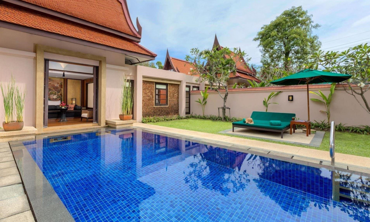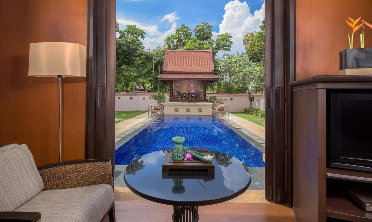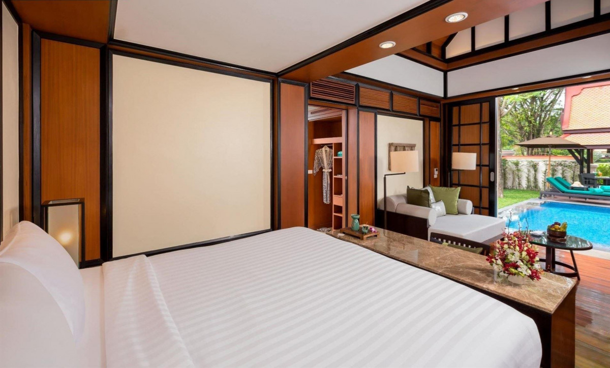 В 22 км от аэропорта, в 21 км от центра бухты Патонг, на западном побережье острова Пхукет, в бухте Bang Tao, рядом с полями для гольфа