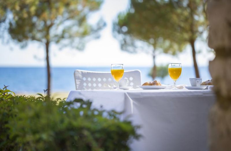 Ухоженные газоны, оливковые деревья, тенистый сосновый лес и прекрасные скалистые галечные пляжи создают