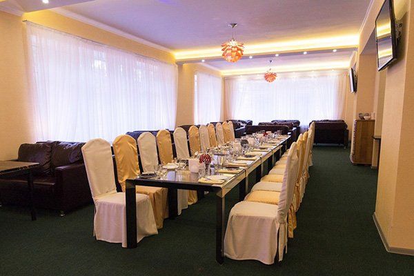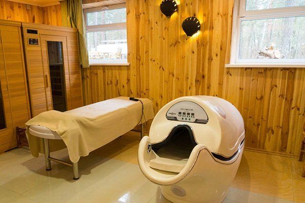 Состоит из 4-этажного корпуса, гостевого дома, спа-комплекса.