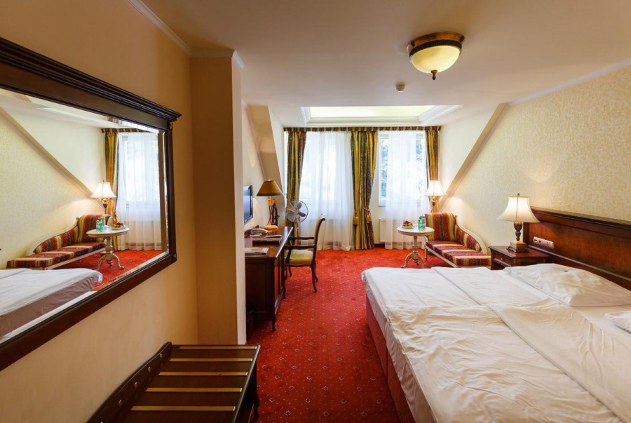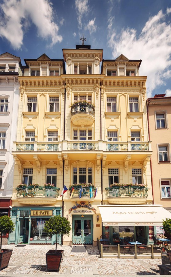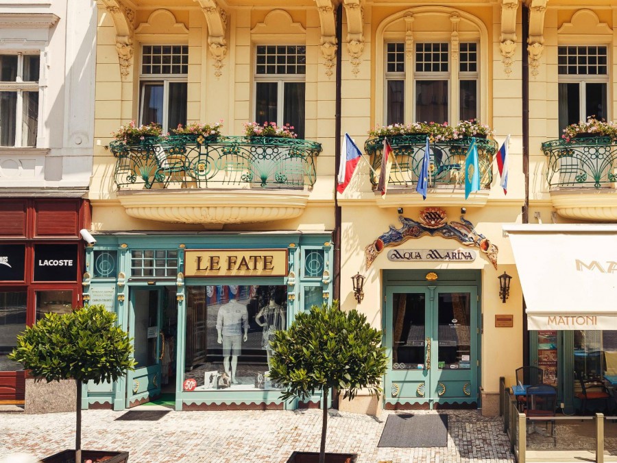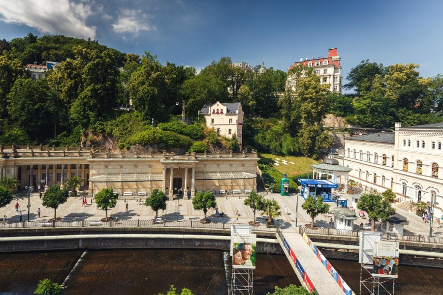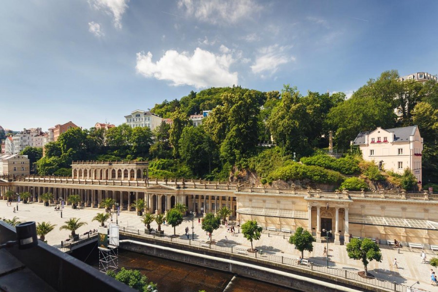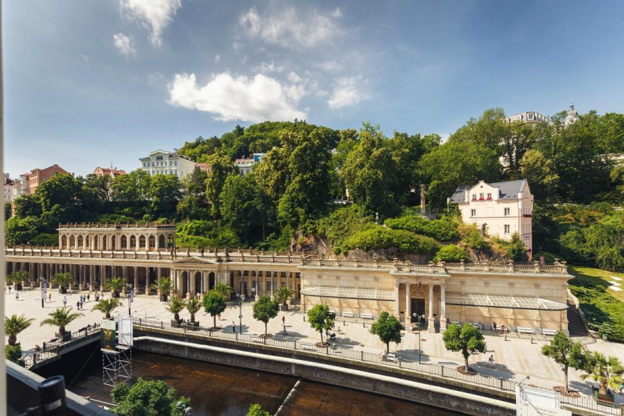 В самом сердце курортной зоны, напротив Мельничной Колоннады, в обрамлении исторических красот Карловых Вар.