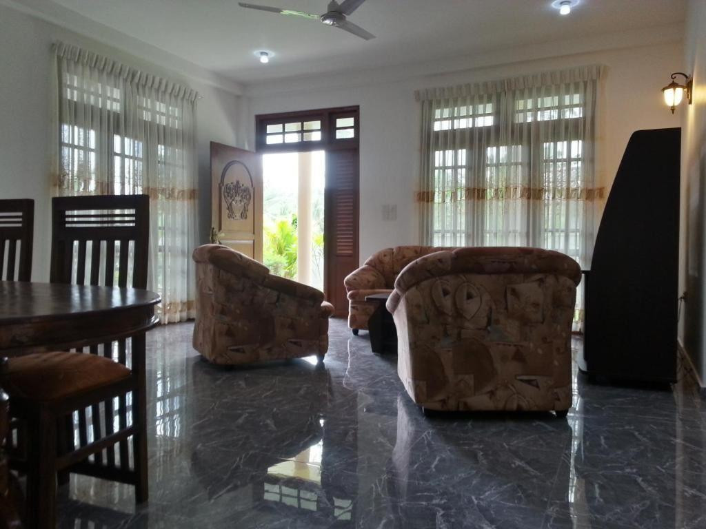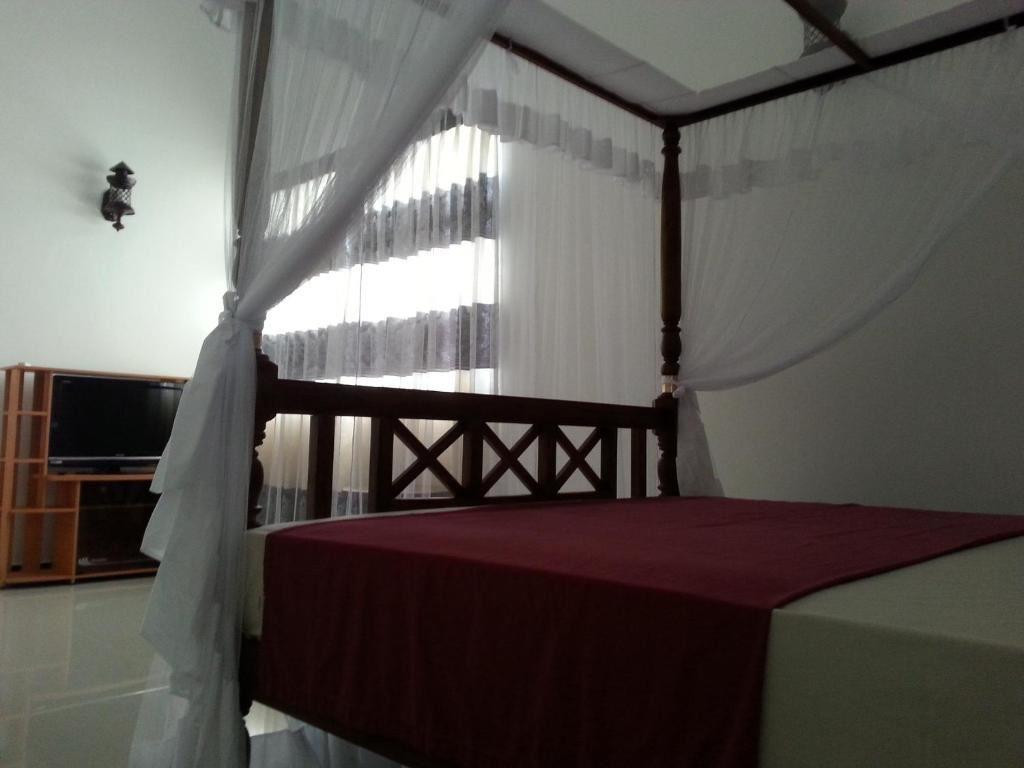 Отель - хороший гостевой дом, с нормальной мебелью, большими чистыми номерами, в нашем номере было все: и телевизор и холодильник, чайник, посуда, огромная двуспальная кровать под балдахином, шкаф, стол, стулья, большой санузел с душем и горячей водой. Единственный недостаток - не обеспечивают бесплатно питьевой водой, моющими средствами (только туалетная бумага), не предоставляют чай, кофе, сахар, как обычно в отелях. Уборку в номерах осуществляют только по требованию. Дружелюбный улыбчивый персонал, обмен валюты, покупка воды - на ресепшен. При отеле всегда можно взять тук-тук, или даже мотобайк на прокат. Завтрак все 10 дней был на выбор: глазунья или омлет, кофе или чай плюс 2 тостера и масло сливочное с джемом, небольшая нарезка из фруктов: два кусочка папайи. два крохотных кусочка арбуза, два маленьких кусочка ананаса и маленький банан. Скромно, но голодными не были. В отеле 3 здания, возле главного корпуса бассейн, чистый. Отель и обслуживание оцениваем на 4,5 балла. Расположен отель от моря далековато, около километра надо пройти по дорожке по деревне, зато дорога очень интересная - всегда встречали кого-нибудь из представителей местной фауны: то обезьян, то варанов, то огромную игуану, то бурундучков и т.п. Учитывая, что развлечений больше практически никаких - это было даже не лишним. Есть несколько пляжей рядом, относительно тихих без сильных волн. Пляж с черепахами, пляж местный, где купаются в основном местные жители с детьми, т.к. там мелко, большой пляж Унаватуна, есть недалеко замечательные пляжи без волн Джангл-бич большой и маленький, можно добираться на тук-туке, можно и пешком дойти. Наш отдых выпал на праздник Нового года, неделю на пляжи привозили местных жителей автобусами, поэтому народу было много. Питались в кафешках, цены примерно везде одинаковые. Народ очень дружелюбный, приветливый, детки всегда бегут здороваться. Если соберетесь в поездку - берите ненужные вещи - подарите, живут местные жители очень бедно, дети рады любой игрушке и тряпочке. Шри-Ланка очень красивая страна, побывали на экскурсиях, много чудесных впечатлений. Отдых очень понравился, разница во времени с Екатеринбургом всего полчаса, так что и выспались и нагулялись и накупались от души!