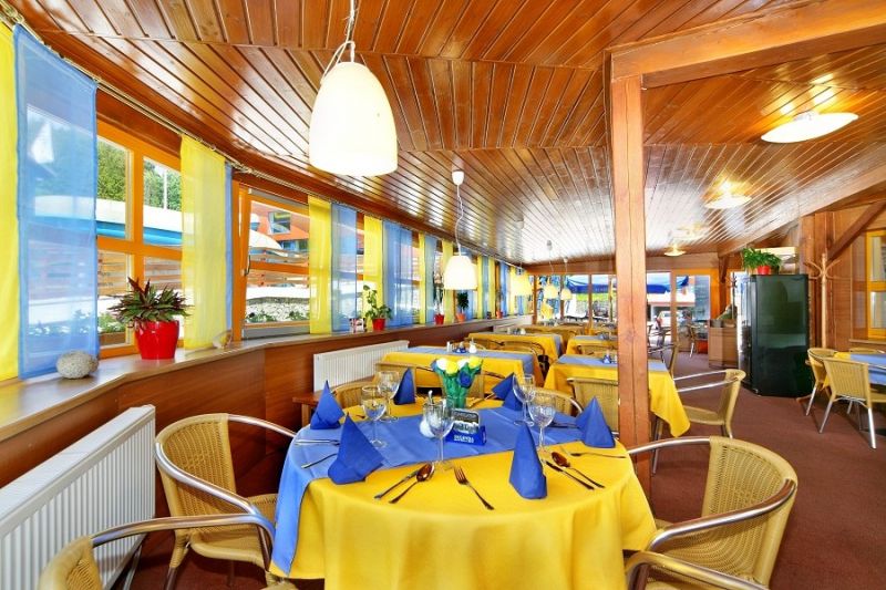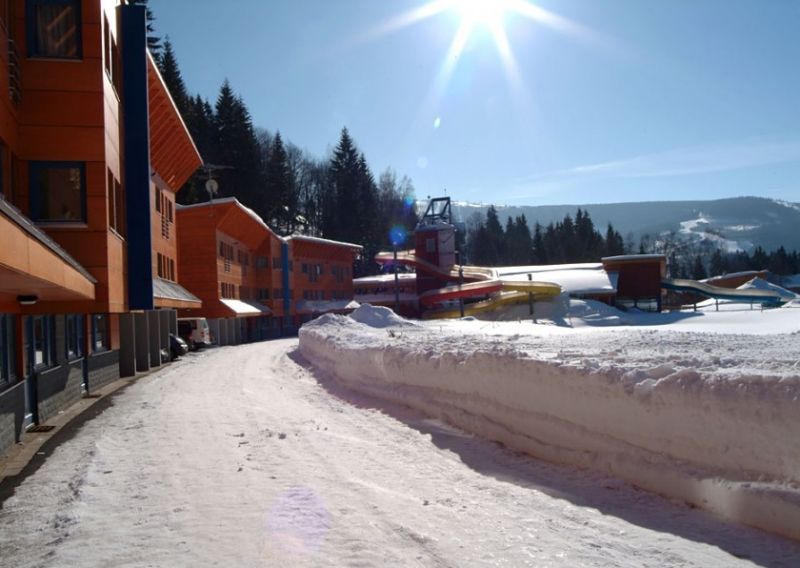 Отель Aqua Park находится всего в 900 м от центра Шпиндлерув Млын, напротив лыжного ареала Медведин.