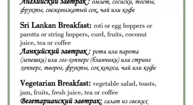 HB - Завтрак, Ужин