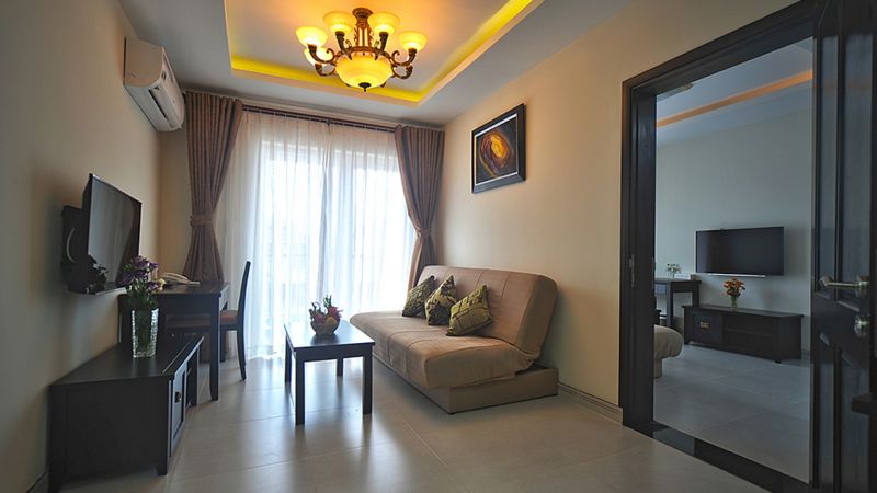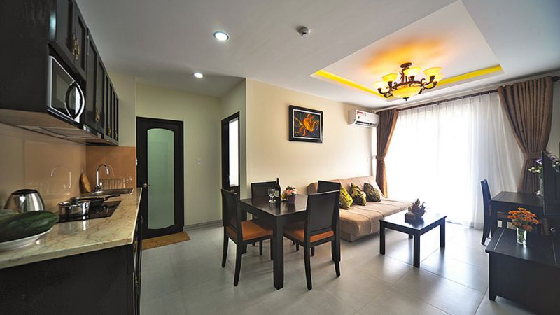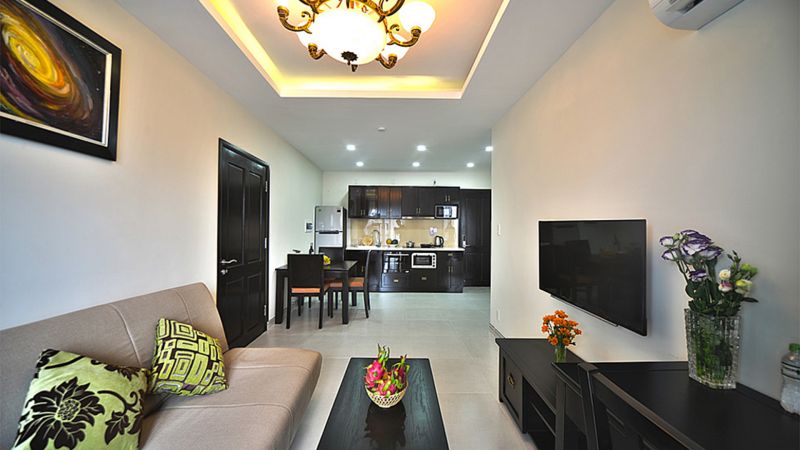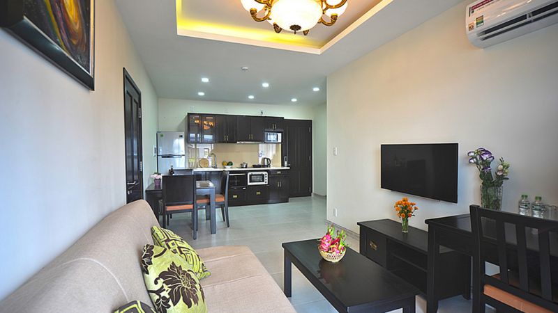Апартаменты с одной спальней (43-50 кв.м, 2 дополнительные кровати, до 6 человек, с полностью оборудованной кухней, обеденной зоной, зоной отдыха и удобной ванной комнатой со стиральной машиной в каждой квартире)