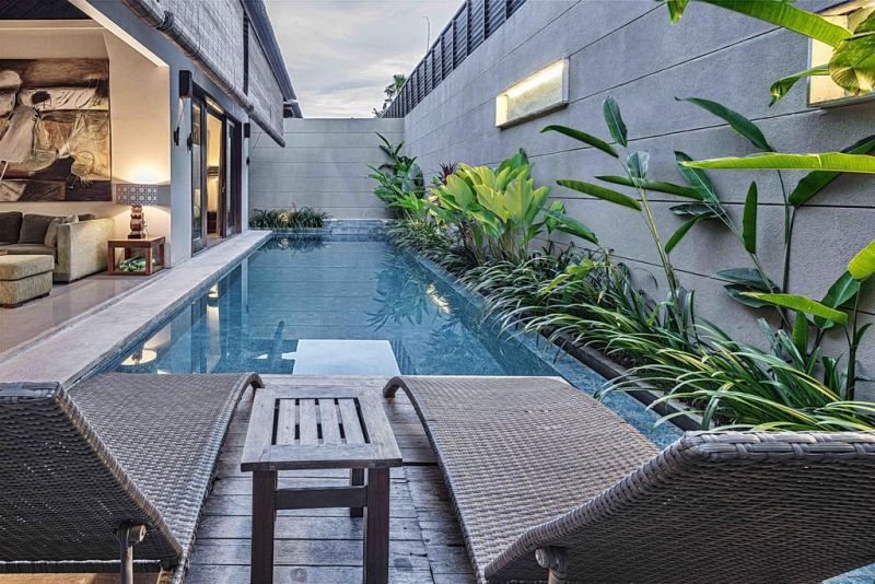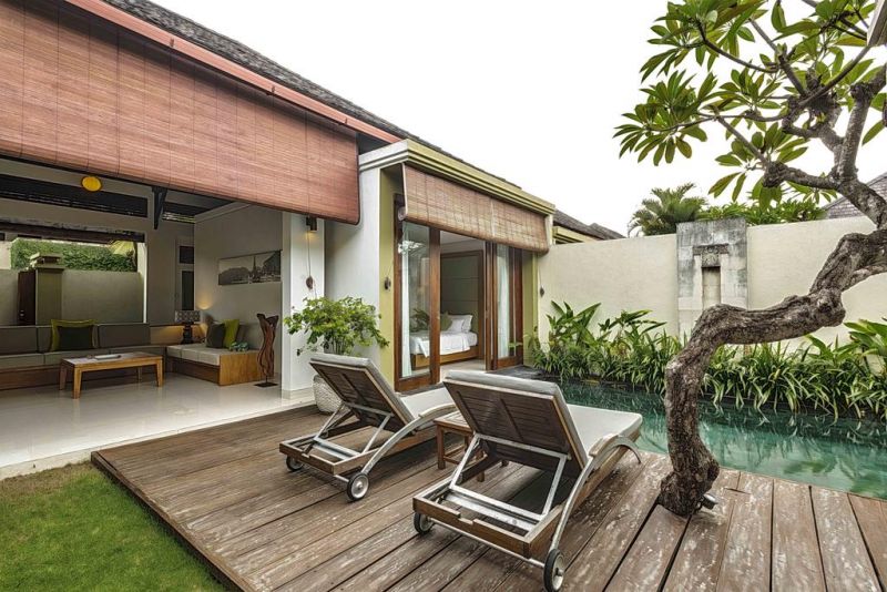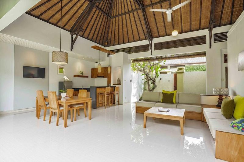 Pradha Villas – это одиннадцать вилл, расположенных посреди прекрасных садов, с одной или двумя спальнями, с частным бассейном и джакузи, террасой-гостиной, столовой и кухней. Виллы построены в стиле традиционных домов островов Бали и Ява, с применением местной древесины и тканей, с современным минималистским влиянием.