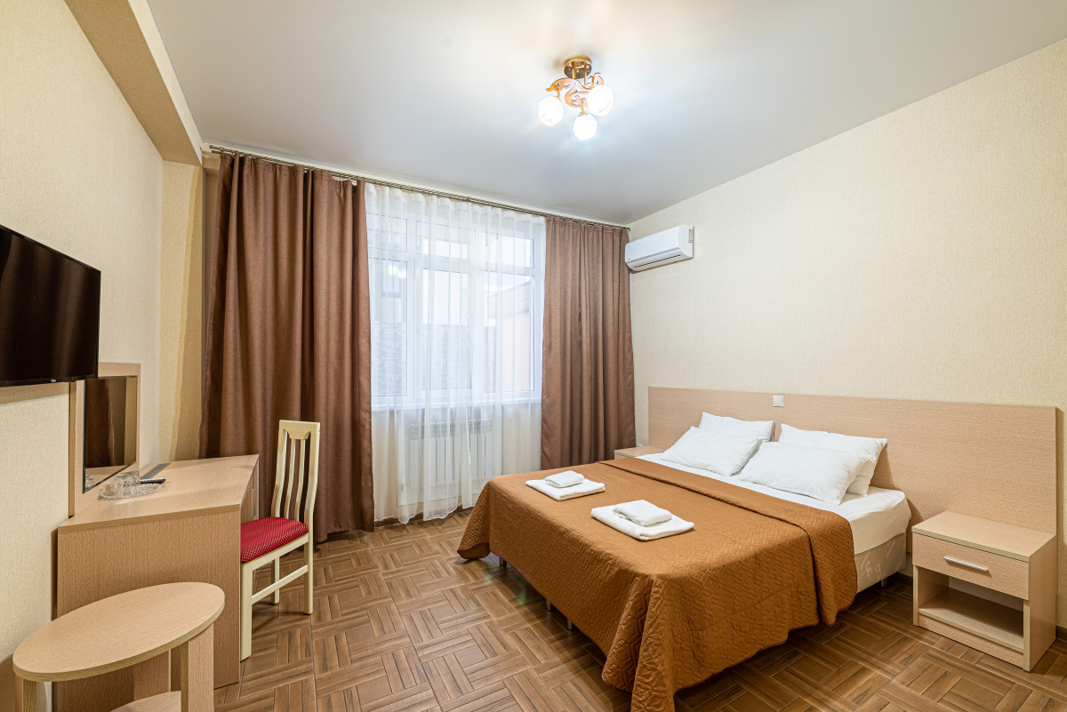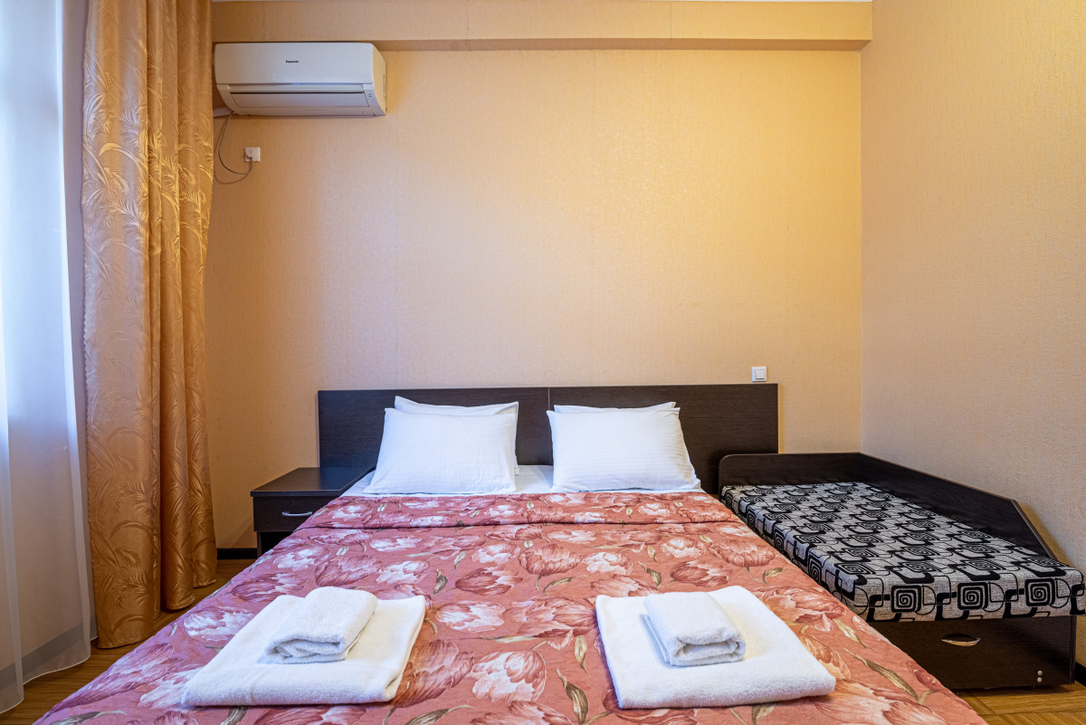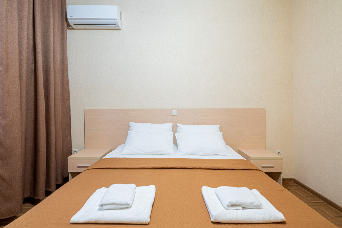 Что понравилось: номер- просторный, чистый, новый, свежий ремонт, хороший балкон. В наличии щетки, мыло, гель для душа. Чистое постельное белье, достаточное количество полотенец. Территория неплохая, все необходимое есть, бассейн чистый. Близко к автобусной остановке откуда можно доехать куда угодно, до моря тоже недалеко. Приветливая администратор. Рядом есть магазины, аптека, товары первой необходимости можно купить. Из минусов: идти в горку (но это минус скорее персональный, кто маломобилен, для нас не критично, но учитывать гостям надо это). Не очень сытные и вкусные завтраки, мы не наедались. Нет чайника в номере и кулера с водой, есть один чайник на весь этаж, но мы как ни пытались им воспользоваться, все время кто-то забирал, в итоге мы купили просто себе чайник в номер. И рядом стройка, по утрам шумела, у нас окна выходили в сторону этой стройки. А так без неё очень тихо, спокойно. В целом впечатления замечательные все равно)