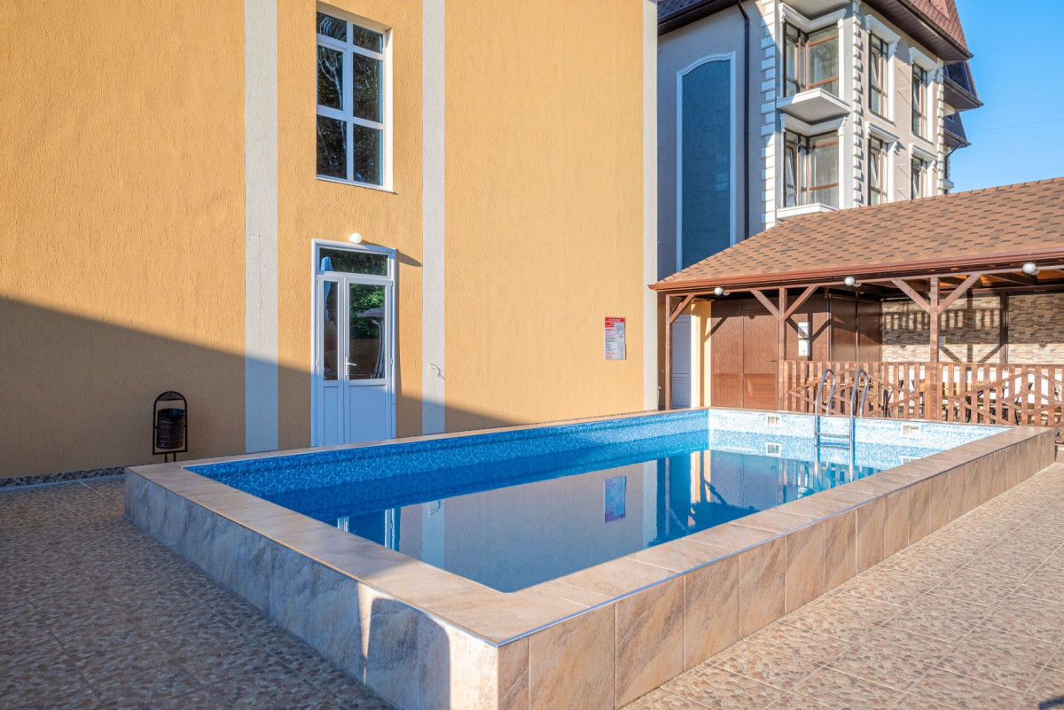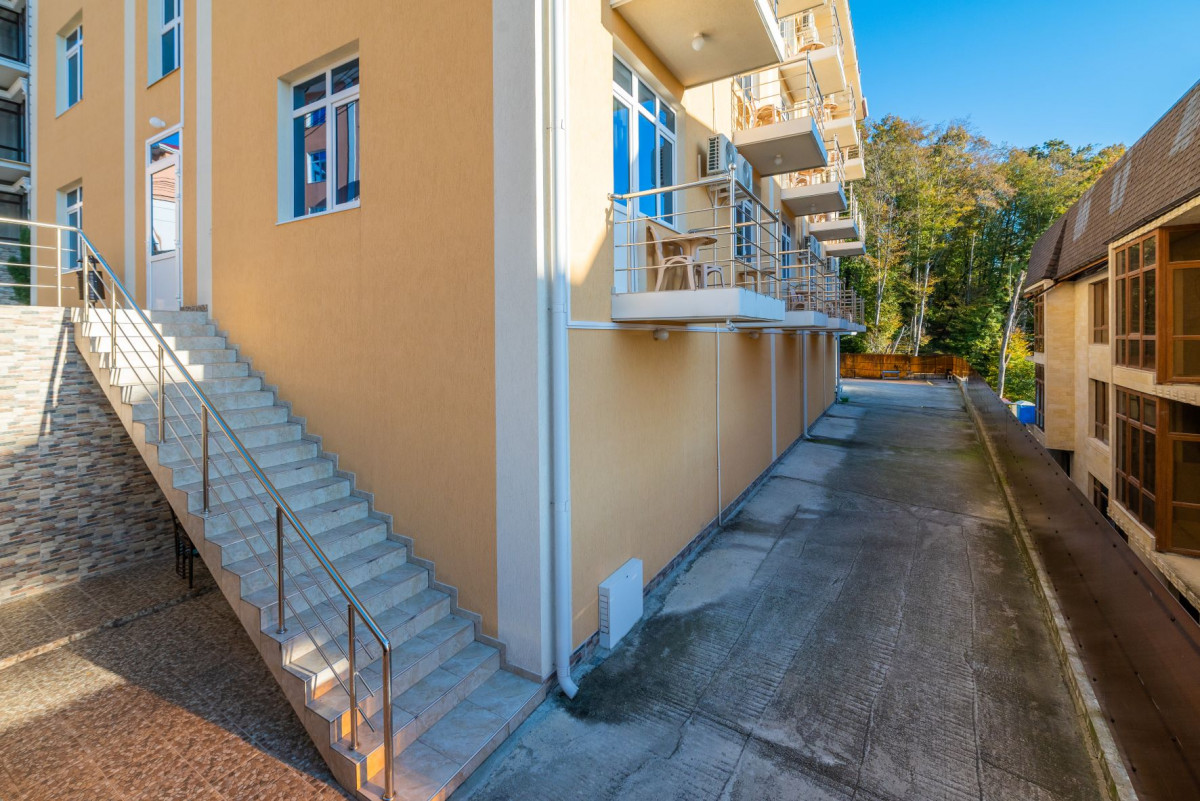 Гостевой дом состоит из одного главного здания (6 этажей, лифта нет, 32 номера) и дополнительного корпуса (4 этажа, лифта нет, 36 номеров). Обращаем ваше внимание на расположение гостевого дома: преобладает горный рельеф местности.