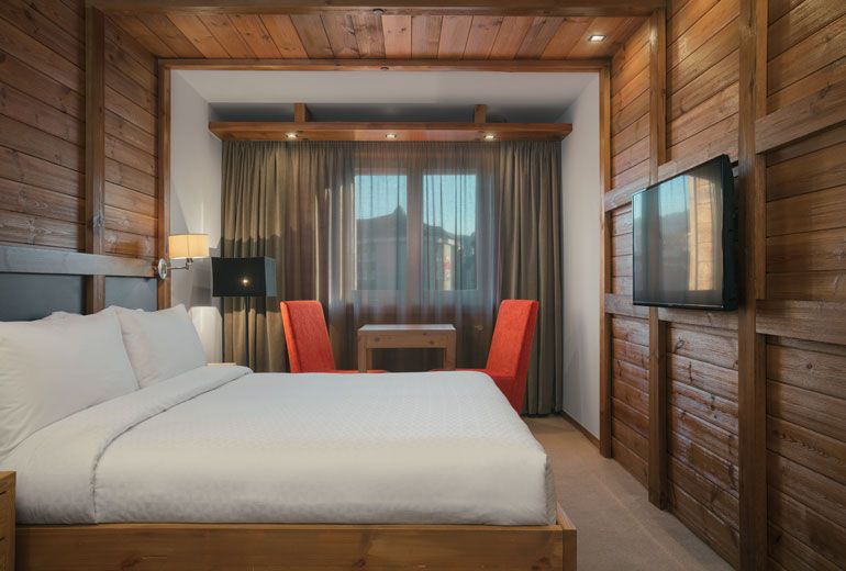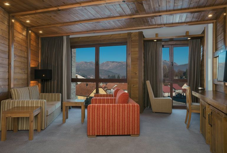 Classic Junior Suite (45м2, номер рассчитан на 4-х человек. В спальне - кровать king-size, зеркало в полный рост .В просторной гостиной два дивана-кровати, удобные кресла, ТВ и письменный стол. Из окон открывается красивый вид на город и горы.)