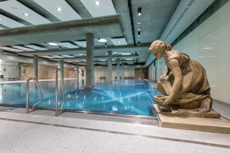 Бассейн и сауна: Закрытый термальный бассейн (13,7×9,5м), (среднеминерализированная термальная вода)–платно, фитнесс–центр - платно.