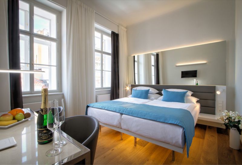 Отель, реконструкция которого прошла в 1999 году, находится в самом центре Праге в районе Мала Страна, в непосредственной близости от Пражского Града и в 60 метрах от Карлова моста, прямо на Королевском пути, в 5 минутах от Малостранской площади.Ближайшая станция метро Malostranska. В пределах приятной пешей прогулки имеются множество высококлассных ресторанов, а также главные исторические достопримечательности города. Гостиница состоит из нескольких частей; некоторые номера — нетипичные, с различным видом и интерьером, также имеются залы, летние сады и т.д.