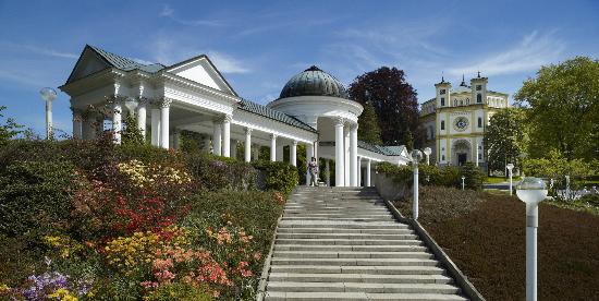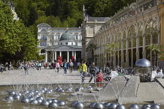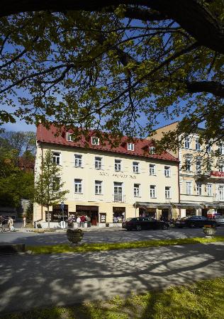 На Главной улице курорта Мариански Лазне, в 300 метрах от колоннады с лечебными источниками и Поющим фонтаном. Расстояние от аэропорта V?clav Havel Airport - 170 км.
