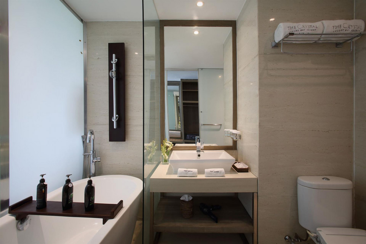 Crystal Suite (76 м2, спальня и гостиная с межкомнатной дверью, 2 ванные комнаты, кухонный уголок с принадлежностями, балкон с видом на бухту)