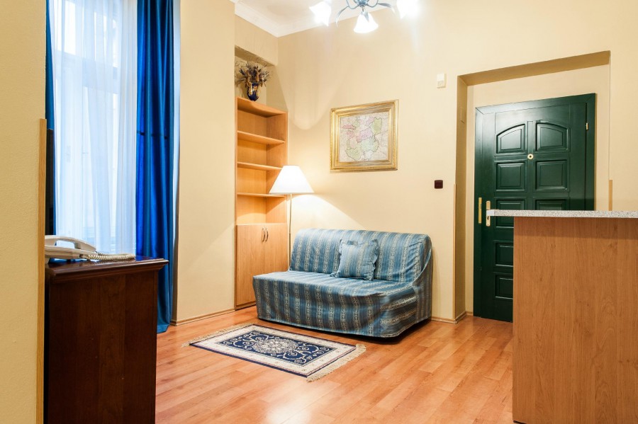 Расположен в историческом центре города, в 5-ти минутах ходьбы до Вацлавской площади и Национального музея.