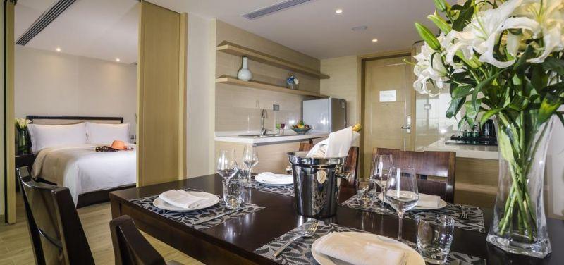 Отдыхали в 2020 году, отель хороший, чисто везде. В каждом номере большой балкон со столиком и стульями, где можно отдохнуть попить кофе. Так же в номерах есть плитка индукционная на 2 конфорки, чайник, кружки ложки, чай т е все необходимое. Но мы в номере не готовили а ходили по берегу в Рыбацкую деревню, там все морепродукты наисвежацшие и так же есть всякие кафешки. Можно и с собой в номер взять. В отеле все достойно. Депозит 100 $.