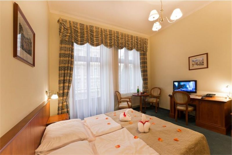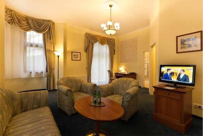 Рядом с русским православным собором и недалеко от колоннад с лечебными источниками в курортном городе Карловы Вары. Расстояние от аэропорта V?clav Havel Airport - 119 км.