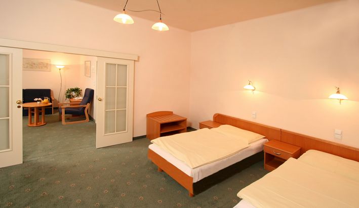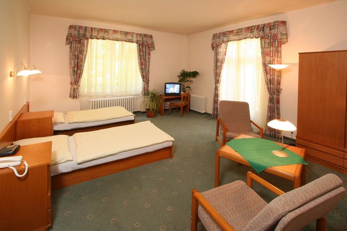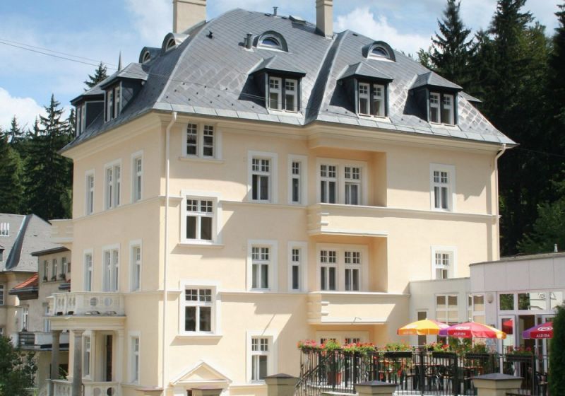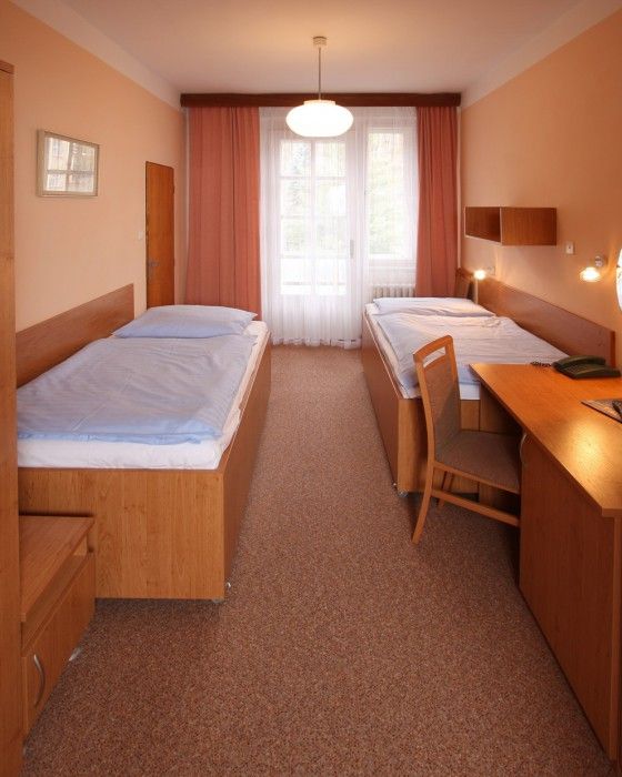 На окраине курортной зоны, у леса, недалеко от центра города Карловы Вары и центральной курортной колоннады. До источников 20 мин. пешком. Расстояние от аэропорта V?clav Havel Airport - 119 км.