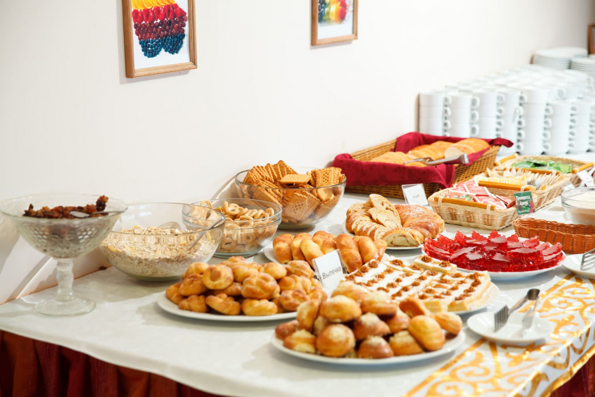 - во время обеда и ужина подача белого и красного вина и пива, ассортимент шведского стола более 45 наименований блюд. Промежуточное питание в Лобби-баре по системе «Все включено» с 10:30 до 12:30, с 15:30 до 17:30 (пиво, вино белое и красное, безалкогольные холодные напитки 2 вида, кондитерские изделия и выпечка в ассортименте, фрукты, горячие напитки и чай)