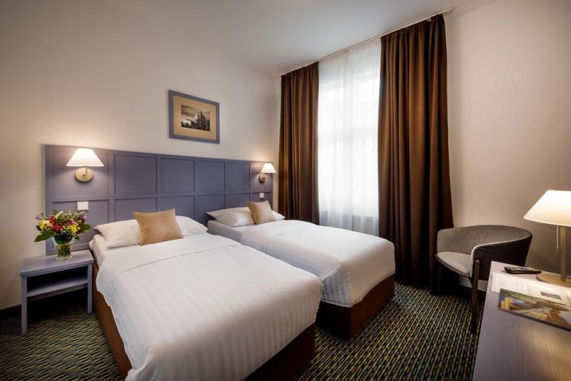 Замечательный отель по расположению, все достопримечательности в пешей доступности! Великолепные завтраки! В номере есть чайник и минихолодильник. Чистый, уютный отель тянет на чешскую "четверку". Останавливаюсь регулярно раз в году именно в нем. В теплое время года рекомендую 6 этаж - вид на крыши и ратушу незабываемый!