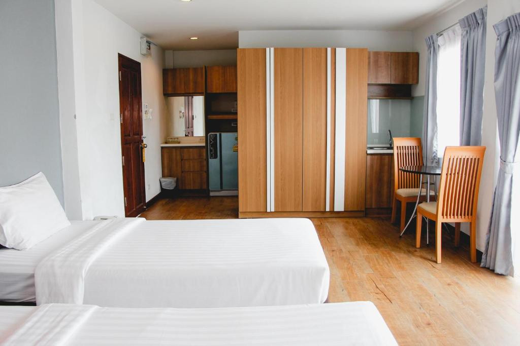 Достойный отель для своей стоимости. Были в конце октября 2025 года. Брали 2 номера без питания. Ежедневная уборка, смена белья и полотенец, приветливый персонал, улыбчивый охранник, из них никто не намекал на чаевые. В номере есть ТВ, канал СТС вещает на русском, кондиционер, минихолодильник. При уборке ставят на стол каждый день в номер 2 бутылочки воды по 0,5. Рядом салон массажа, несколько заведений для приема пищи, рыночек, услуга по подвозу на мопедах, обменник и круглосуточный магазин 7/11 где можно купить чай, кофе, сигареты, алкоголь, готовую еду, которую разогреют на кассе, соки, воды, фрукты, выпечка, рыльно- мыльные товары и многое другое. До моря идти минут 10 по оживлённым улицам. Не пожалели, что остановились именно здесь, хотя изначально были некие сомнения. Балкон выходит на проезжую часть, поэтому кто не может спать под шум машин и мопедов учитывайте этот факт. Мы предпочитали спать с открытой балконной дверью и не включать кондиционер лишний раз, хотя по прилёту домой все равно переболели((( Отель этот теперь называется LE NARA. Надеюсь, что вернёмся! Спасибо, LE NARA.