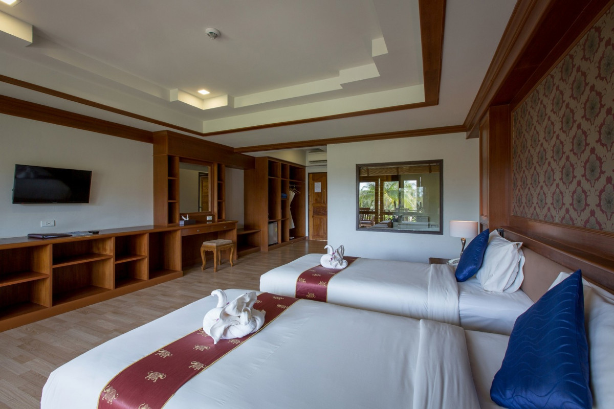 Всем добрый вечер! Если вы устали от городской суеты шум агама работы и людей вам в этот отель! Здесь вы получите комфортный номер отличную горячую и холодную воду в душе, нормальное постельное бельё и банные принадлежности халаты тапки, отличный бассейн который работает практически круглосуточно, и шикарный ресторан с полноценными разнообразными завтраками! Если вас пугает дорога и то как добираться до отеля- это ерунда, переплыть На лодочке 5 минут по заливу и потом пересесть на тук-тук и доехать 10 минут до отеля Это не проблема! Тем более что на острове куда причаливает Лодка есть лавки с фруктами отличный ресторан с панорамным видом и хороший магазин типа seven- Eleven где есть всё ! Огромная береговая линия море чистое нет никаких потусторонних стоков нет волны грязи Да есть отливы и есть приливы, но можно гулять по пляжу в обе стороны километров по восемь и наслаждаться красотой джунглей и воды, Если вы хотите поехать на экскурсии Это тоже не проблема Заходите на сайт мой- каолок И выбираете себе экскурсии, рекомендую озеро чааалок и острова. У отельного гида ничего покупать не нужно Это очень дорого и того не стоит, Если вы хотите поменять деньги то на острове рядом с причалом стоит банкомат карта Совкомбанка отлично работает, либо можно поменять деньги в супермаркете или у гидов. Так что если есть у вас сомнения и вы хотите тишины покоя релакса и немножко движухи то смело берите этот отель!