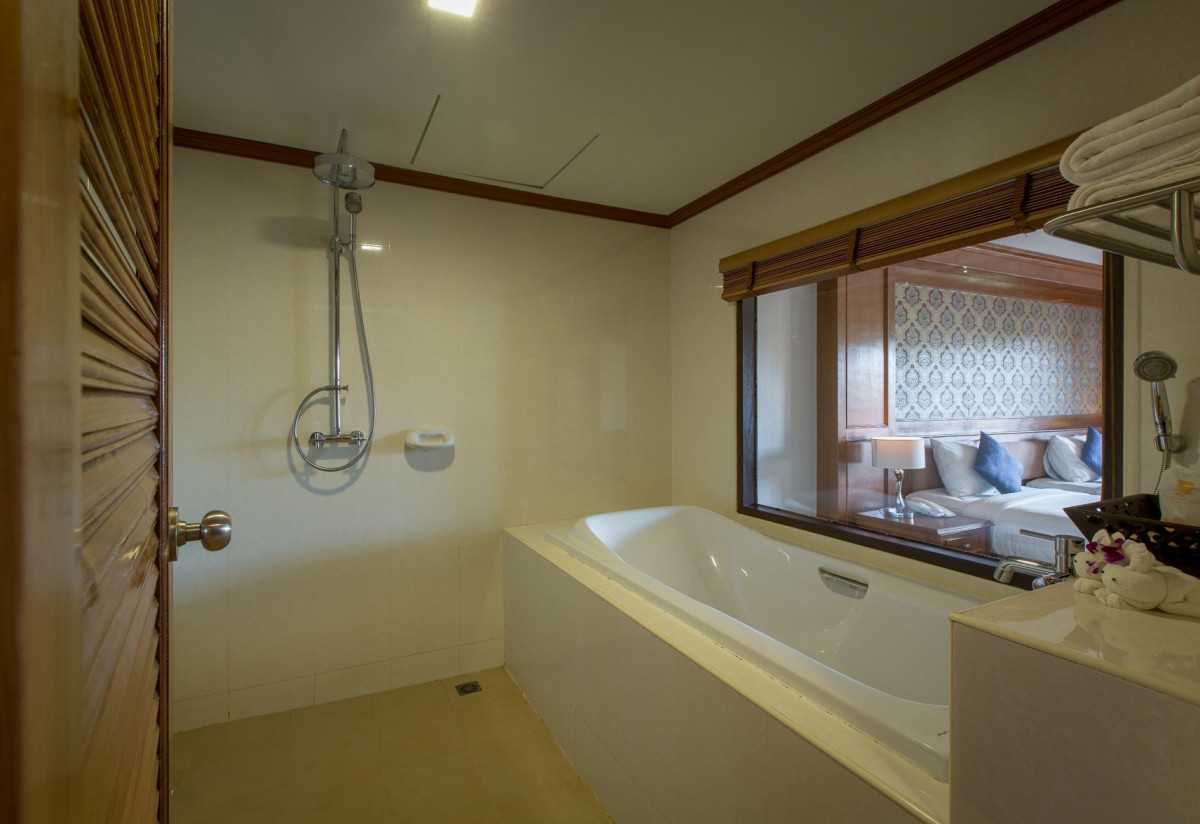 Отдыхали в отеле с 24.01 по 03.02. 2025. Выбирали самый дешёвый отель, поэтому не ждали эффекта "Вау". Радовало то, что отель находится на первой береговой линии. Территория большая и чистая. В комнате есть всё необходимое: чайник, чай, кофе, мыло, гель для душа, шампунь и даже тапочки с халатом. Не очень белоснежное, но чистое. Каждый день убирали в комнате, даже меняли постельное белье. Полотенце тоже меняли каждый день, но пляжные меняли сами, когда видели тележки с уборкой. Воду тоже давали, если не хватало, то набирали сами на ресепшен, там стоит куллер. На территории только один ресторан и иногда вечером на пляже тоже жарили рыбу и креветки. Бар на пляже открывали с 6 часов вечера. И всё заканчивается в 22.00. Редко включали музыку на пляже. Если вам нужны тусовки, то это точно не сюда! Деревня глухая! Идти некуда. При отеле есть магазин со всем необходимым. Лавка с фруктами. И бар с коктейлями у бассейна с домиками. Всё, естественно, очень дорого. До отеля добираться от аэропорта 1,5 часа. Затем через переправу на лодке за 20 бат с человека днём и 40 ночью. Затем на тук туке ещё 7 км. за 300 бат за машину или 50 бат с человека. Очень не понравилось то, что когда приобрели путёвки от гида (сан фан), тоже нужно было платить за дорогу до другого берега, так как забирали только от него. До центра Као Лак 40 км. Это 700 бат в одном направлении. Делать там тоже нечего, всё тоже закрывается в 22.00. Брали путёвки у гида на Семиланские острова, оказалось на много дороже и хуже, чем у других и плюс добраться до другого берега. Туристы ездили от другого турагенства им очень понравилось их забирали из отеля. Завтрак хороший: омлет, яйца, лапша, рис, суп (очень острый), фрукты (ананас, арбуз, дыня, папайя, банан). Венские вафли, йогурт, печенье и тд. Готовят вкусно. Блюда от 150-200 бат. Обменников нет. Меняли в аэропорту и у гида (у него курс выгоднее). Ещё один, для меня, огромный минус - справа расположен отель для нудистов, которые приходили к нам в ресторан кушать. Доходили до территории нашего пляжа голые и одевались только перед рестораном. Тайский массаж делают на берегу под навесом. Мне не понравилось и всё грязно как-то и некомфортно. Море непредсказуемо, 2 раза в день уходит и становится мутное. На берегу очень много крабов. Решать вам, если нужна тишина и покой, то это здесь.